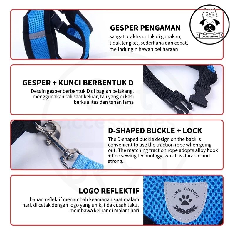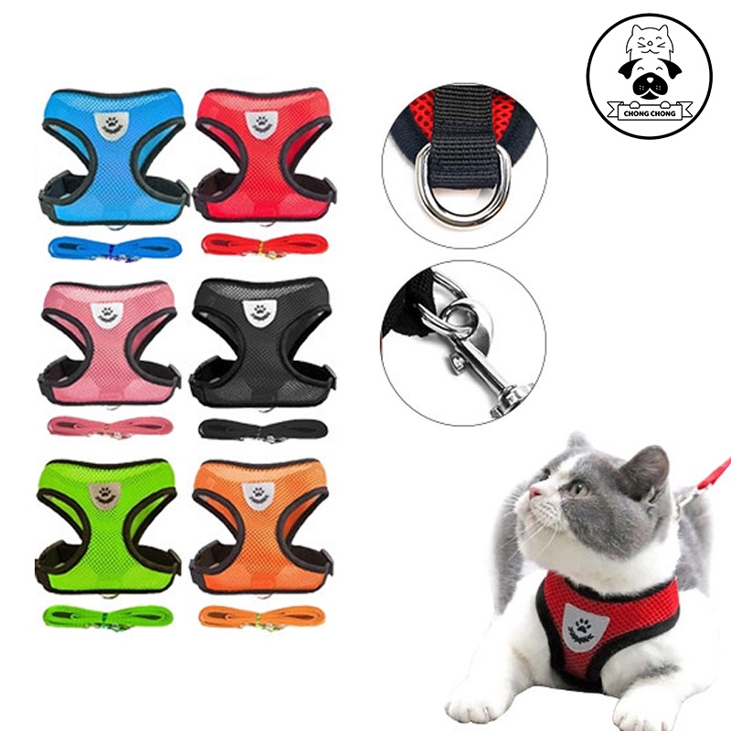 CHONGCHONG - Harness Kucing Tali Rompi Bernapas Hewan Tali Hewan Peliharaan Tali Tuntun Reflektif