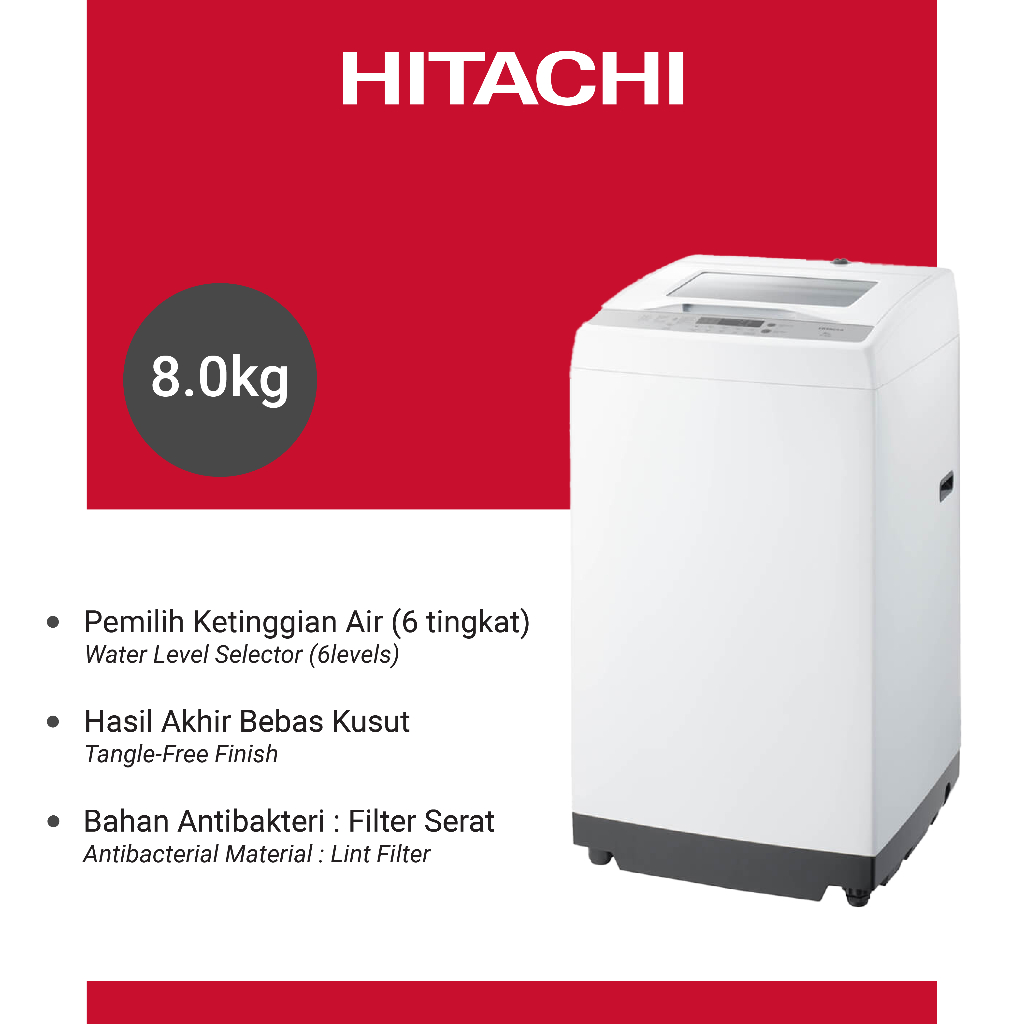 MESIN CUCI TOP LOADING HITACHI 8 KG WHITE SF80XB OTOMATIS 8KG BUKAN ATAS DIGITAL GARANSI RESMI MURAH