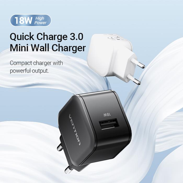Vention Fast Charger USB Adaptor Mini Small Android Apple QC 3.0 18W