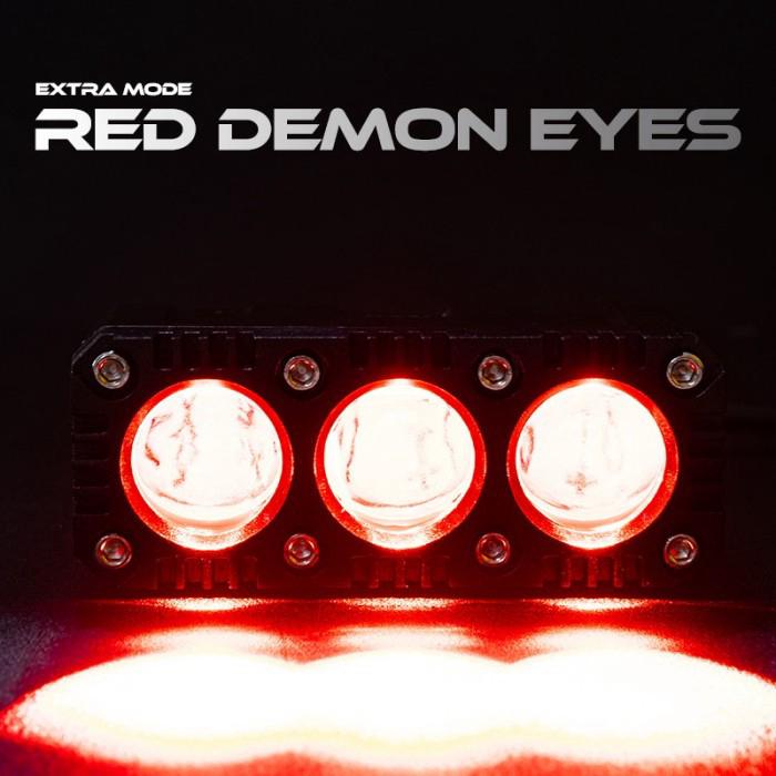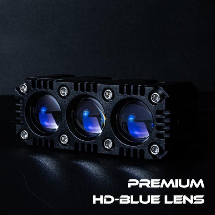 DP 0 LED BAR LGS 3 PROSERIES LAMPU TEMBAK SQL 3 MATA HDBLUE LENS DENGAN KIPAS DAN DEMON EYES DC960V40W KUNINGPUTIH