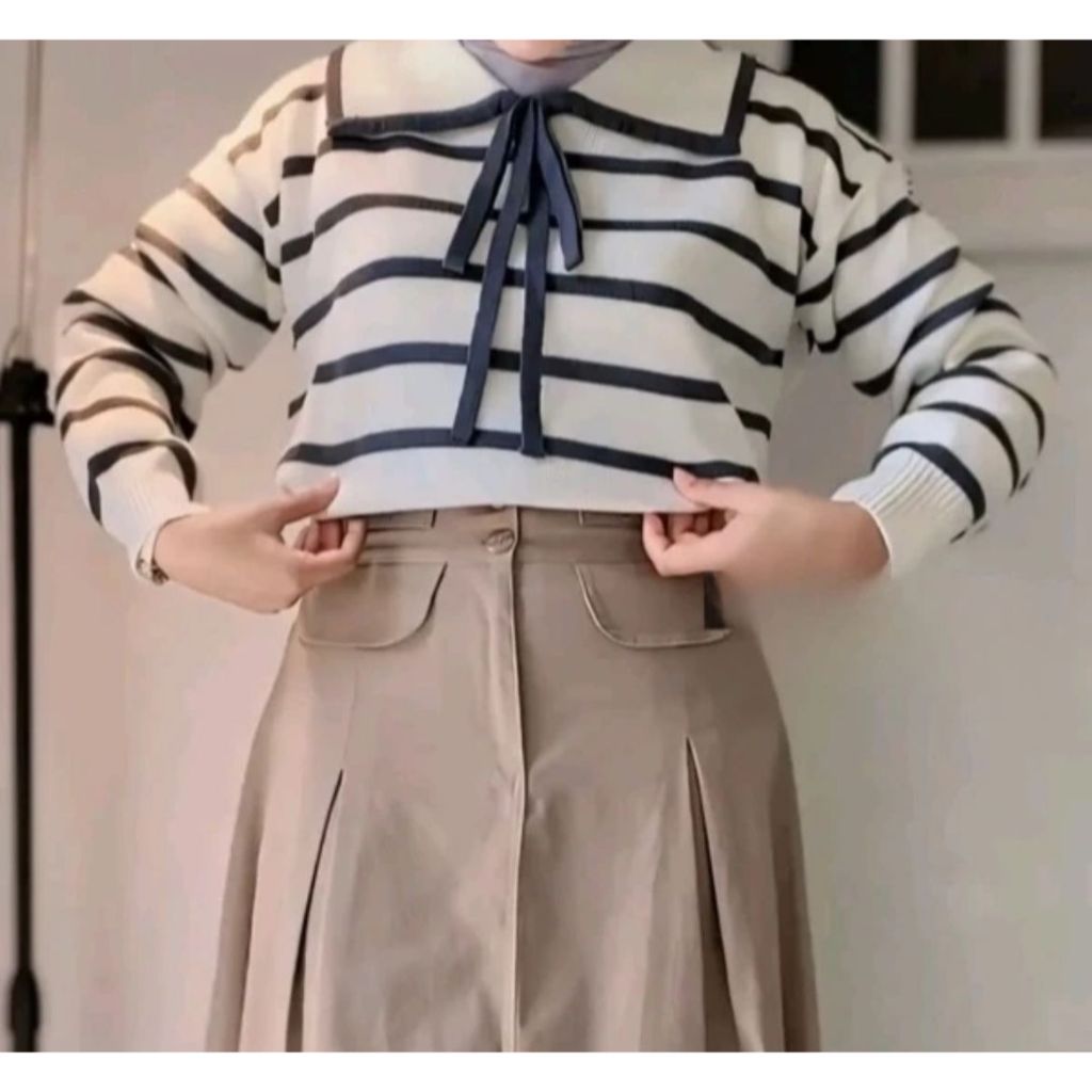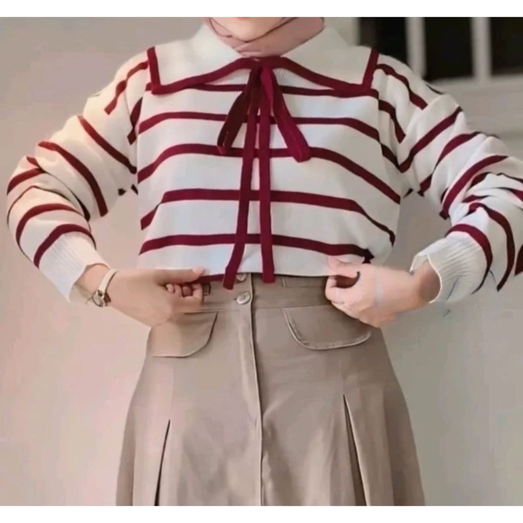 ATASAN RAJUT WANITA MOTIF GARIS KERA / BLOUSE RAJUT WANITA BERKERA