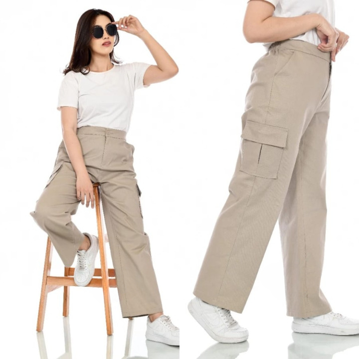 celana baggy Celana Cargo Wanita Highwaist Premium Jumbo orean Style / argo Pants Wanita Bahan American drill Jumbo