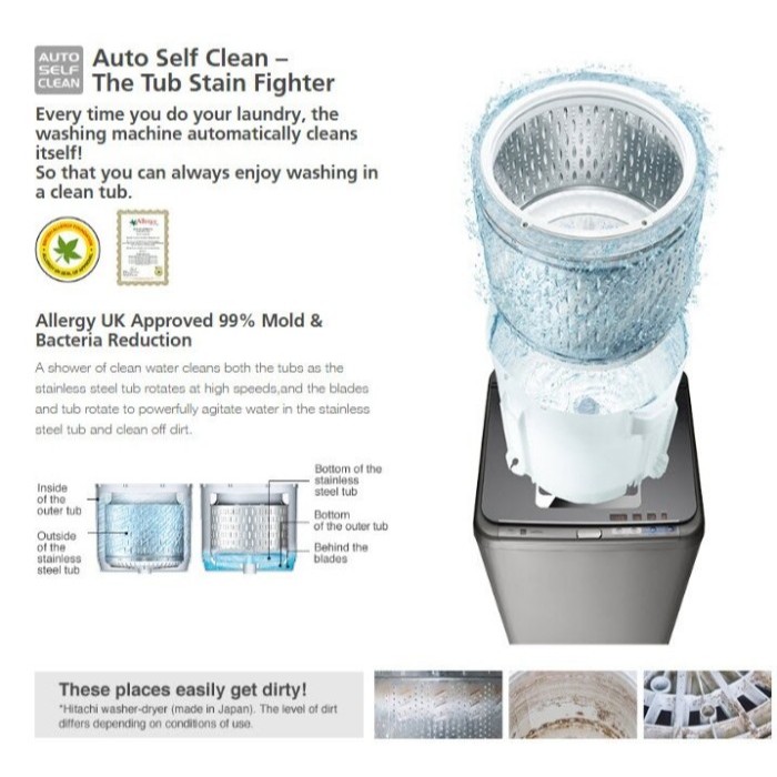 MESIN CUCI TOP LOADING HITACHI TAKI SERIES 10.5 KG LTLH0MVW0TGG OTOMATIS BUKAN ATAS DIGITAL GARANSI RESMI MURAH