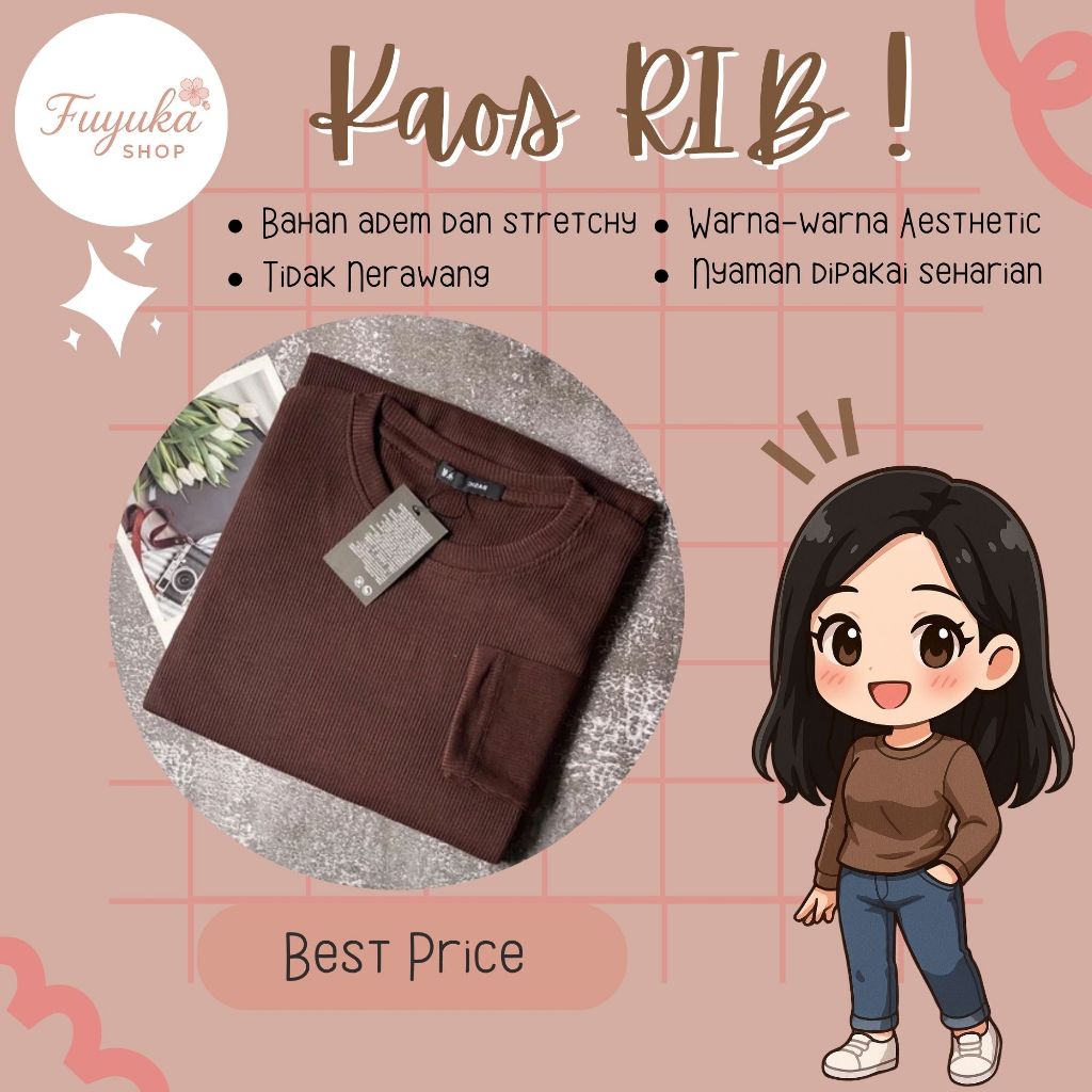 KAOS RIB PANJANG PREMIUM LENGAN PANJANG WANITA POLOS