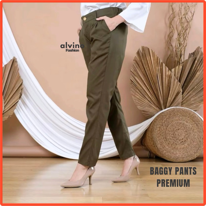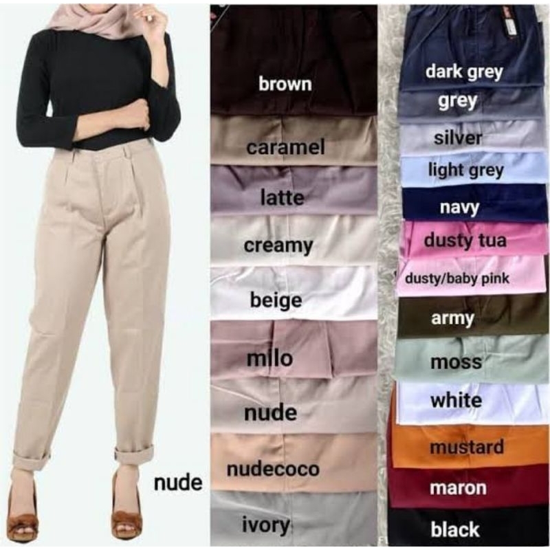 celana baggy Bisa BAGGY PANTS Latte beige nude maroon ivory Dusty pin white moss army dar grey