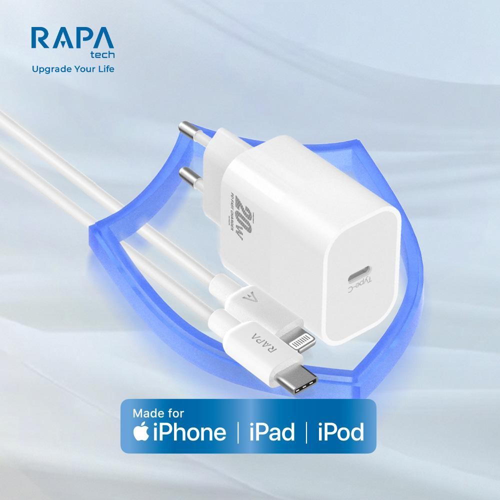 RAPAtech Power II Charger for iPhone 11 12 13 14 15 (PD 20W) MFi Kabel C to Lightning DC6064 Charger Mfi Charger iPhone Fast Charging Adaptor Cable