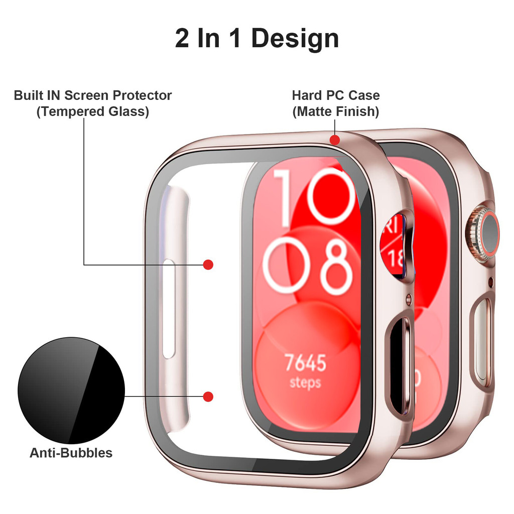 Tempered Glass Hard Plastic Bumper Case for Huawei Watch Fit 4/4 Pro/3 Full Cover Bumper Accessories Screen Protector Cover for Jam Tangan Smartwatch Huawei Fit 3