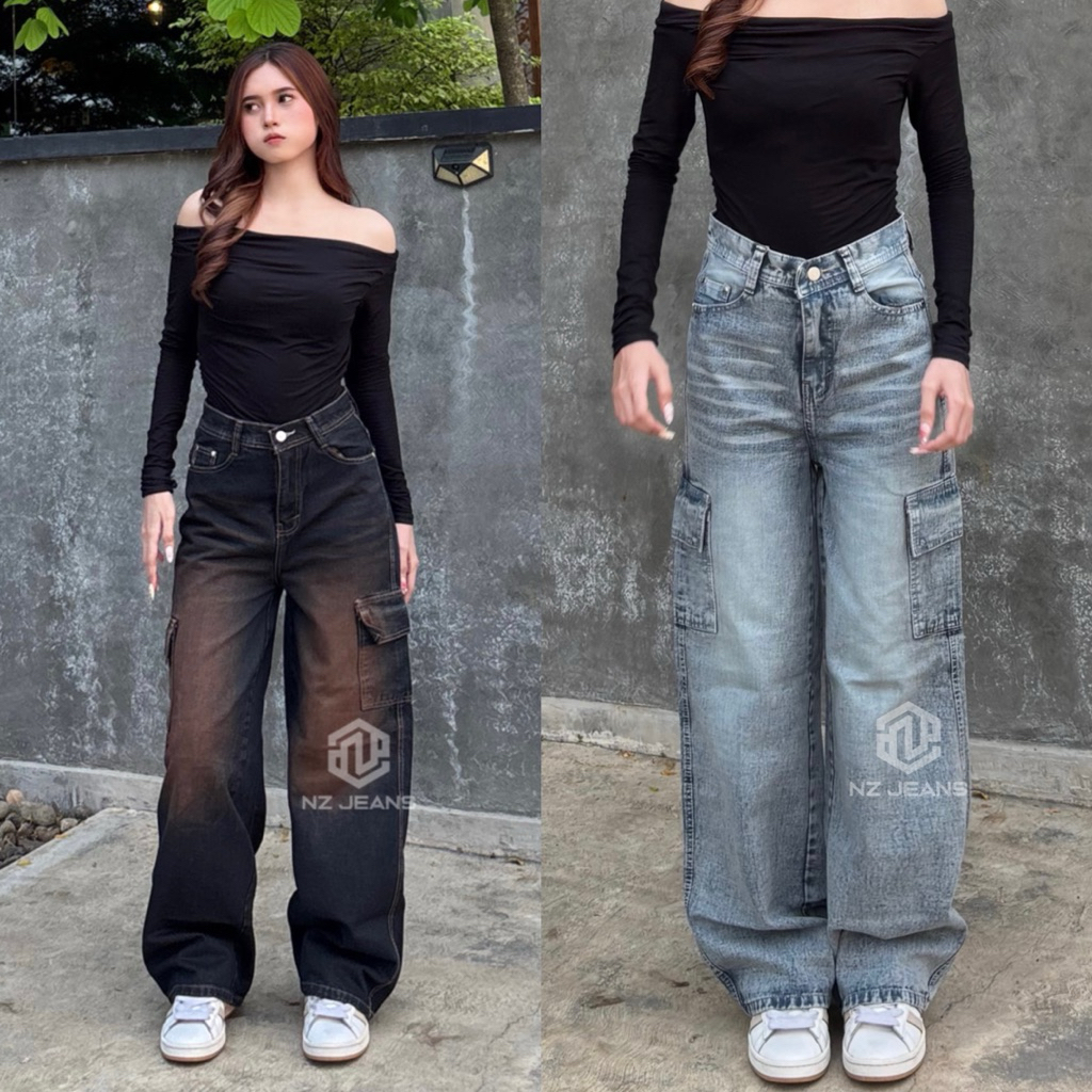 celana baggy HIGWAIST BAGGY CARGO JEANS LOOSE WANITA | CELANA CARGO JEANS LOOSE UNISEX