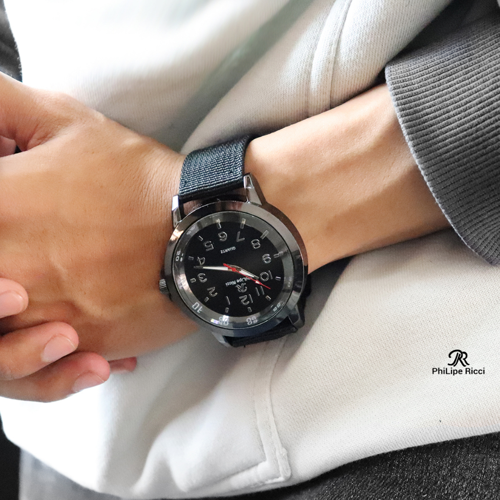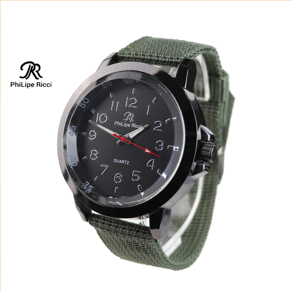 PhiLipe Ricci Jam Tangan Pria Tali Kanvas Terbaru Analog KNVS1 Free Box