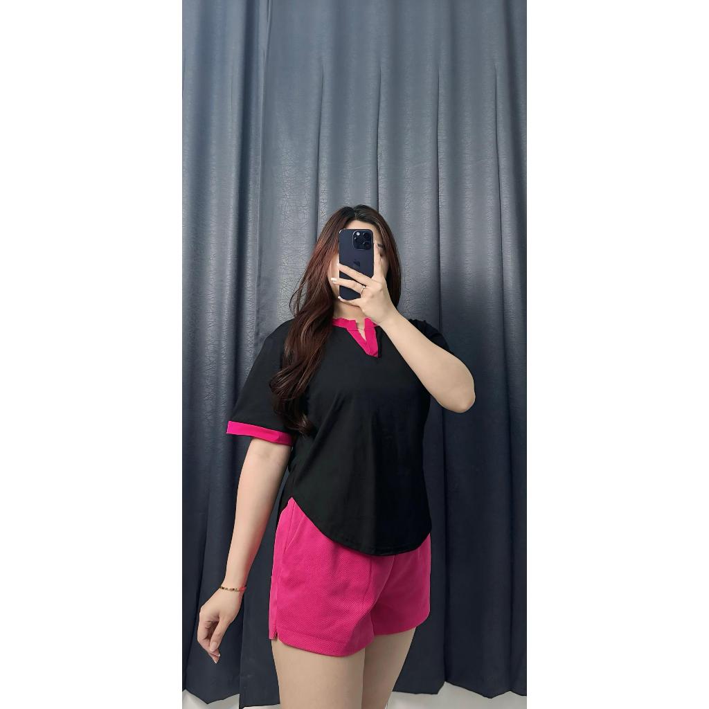 ZEXYS KAOS BAJU ATASAN VIENE T0P KAKI OVAL KOMBINASI 2 WARNA LENGAN PENDEK SHORT SLEEVE