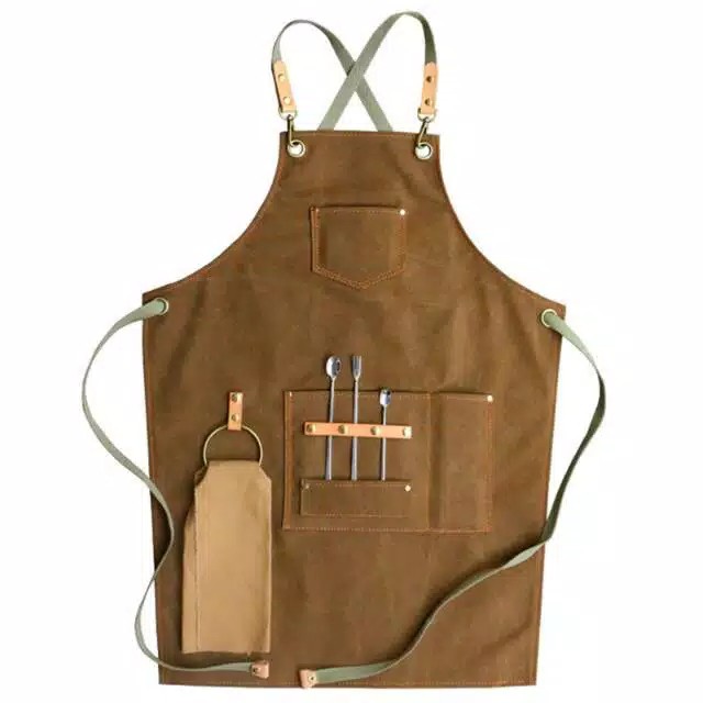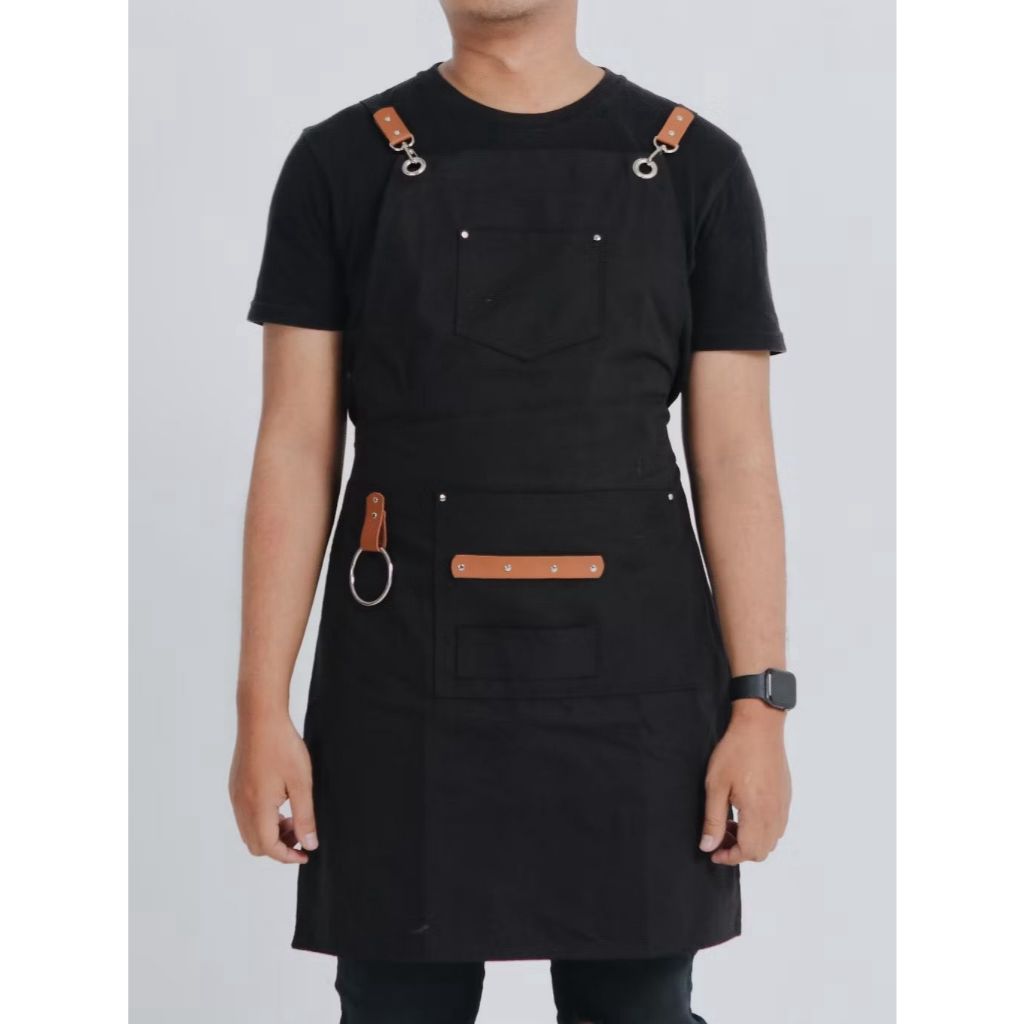 Apron Multifungsi Bartender Canvas Leather Celemek Barista Pria Wanita Dewasa