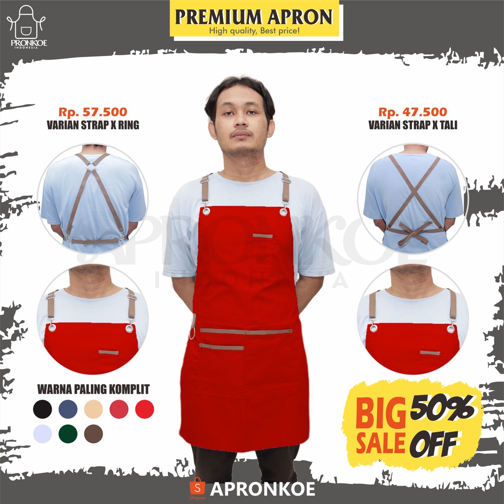 Apron celemek barista masak restoran cafe food drink chef barber waiter drill cotton strap ring strap x tali