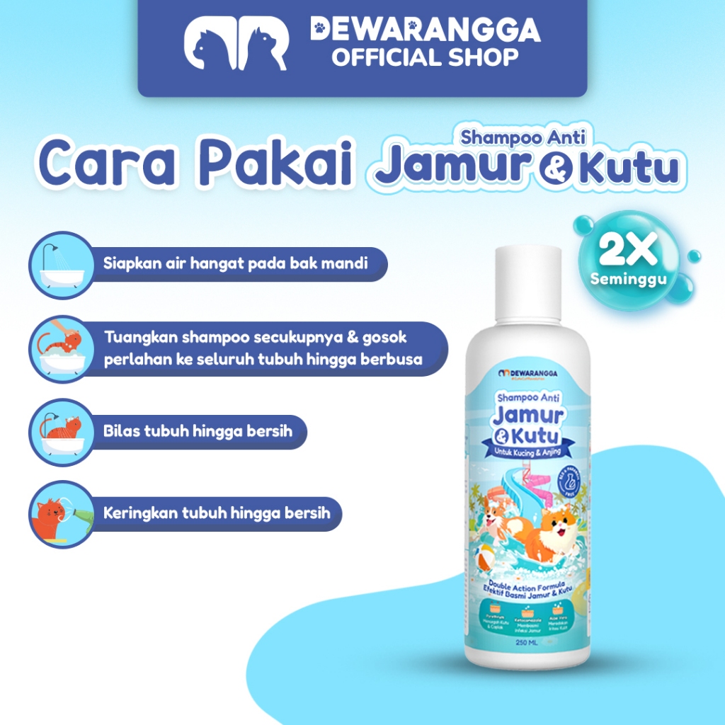 Dewarangga Shampo Anti Jamur & Kutu untuk Kucing dan Anjing. Shampo Kucing dan Shampo Anjing dengan Perlindungan Ganda untuk Cegah dan Atasi Jamur, Kutu, Meredakan Gatal, Iritasi Kulit.