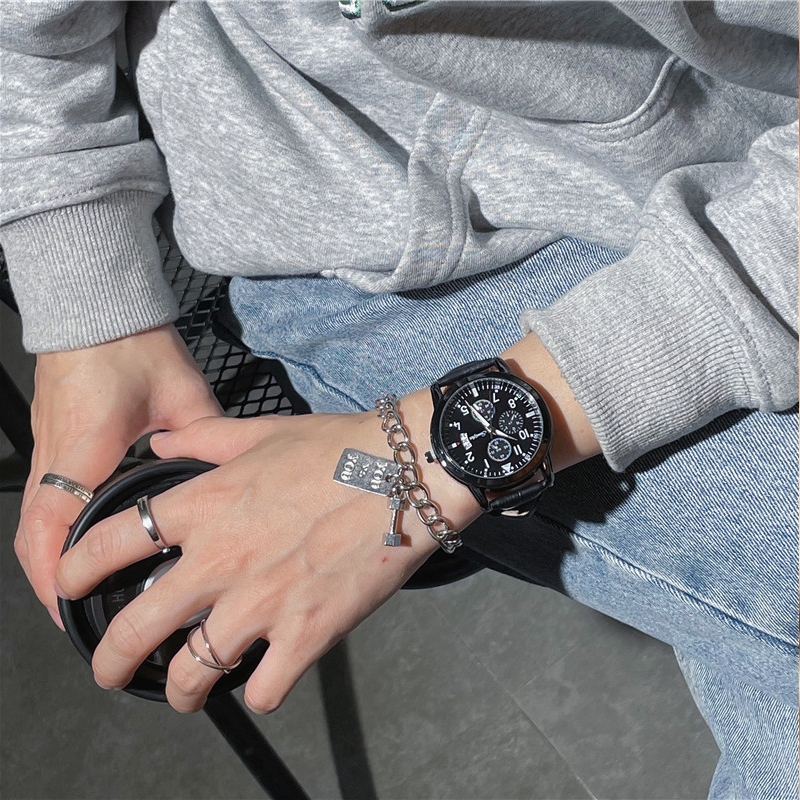 Loggio Jam Tangan Pria Lampu Malam Anti Air Kuarsa Tali Kulit Jam Tangan Cowok