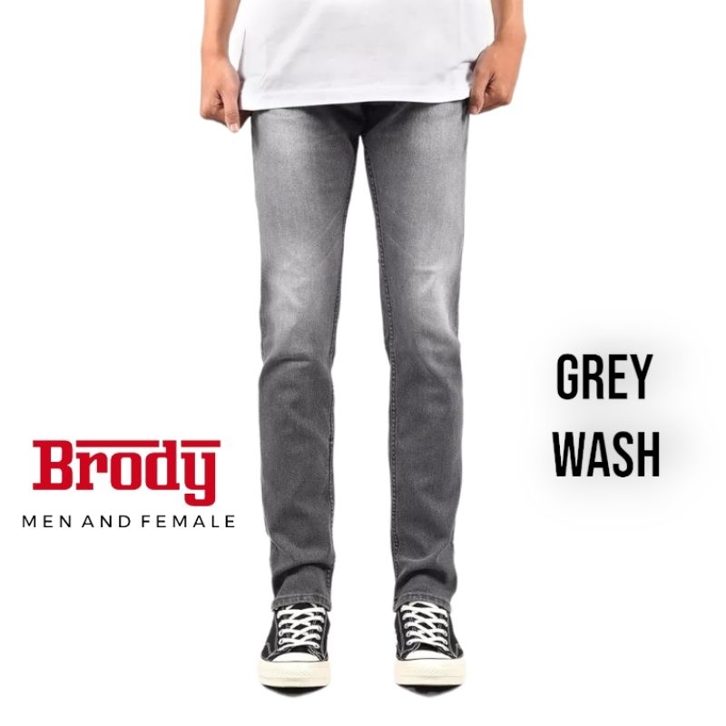 Celana Jeans Pria Bahan Melar Denim Slim Fit Cowok Abu Muda Washing Grey Stone Cerah