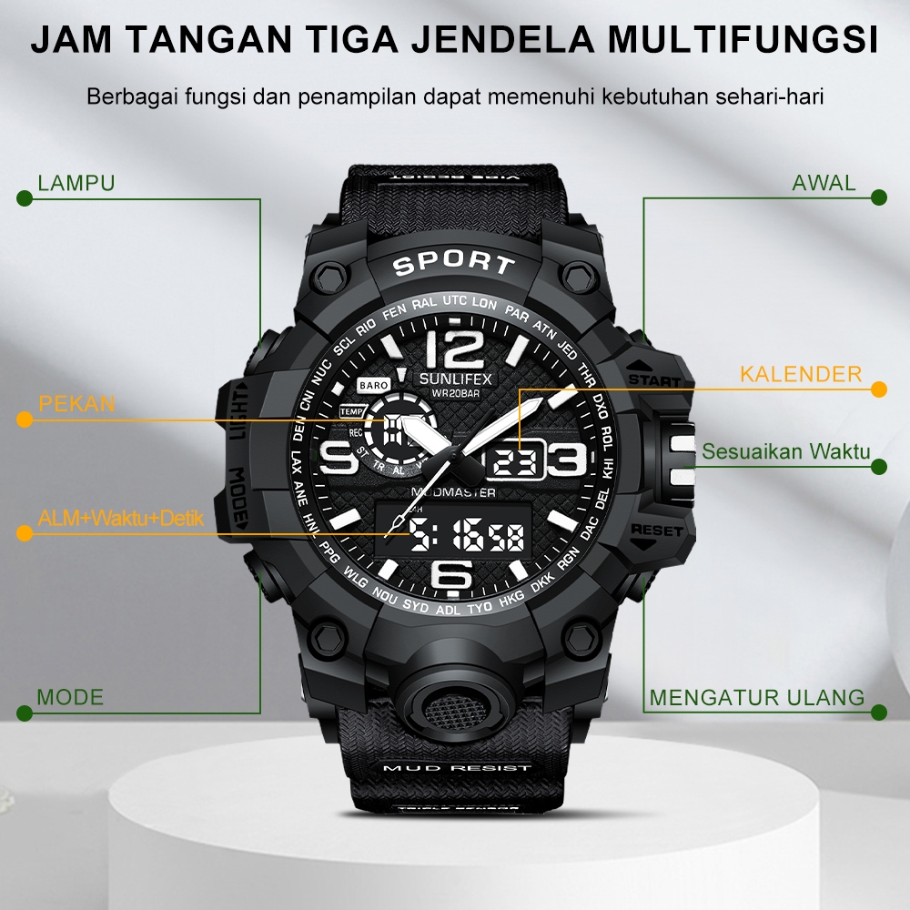 Sunlifex Jam Tangan Pria Digital Olahraga Kasual Tali Silikon Jam Tangan Cowok