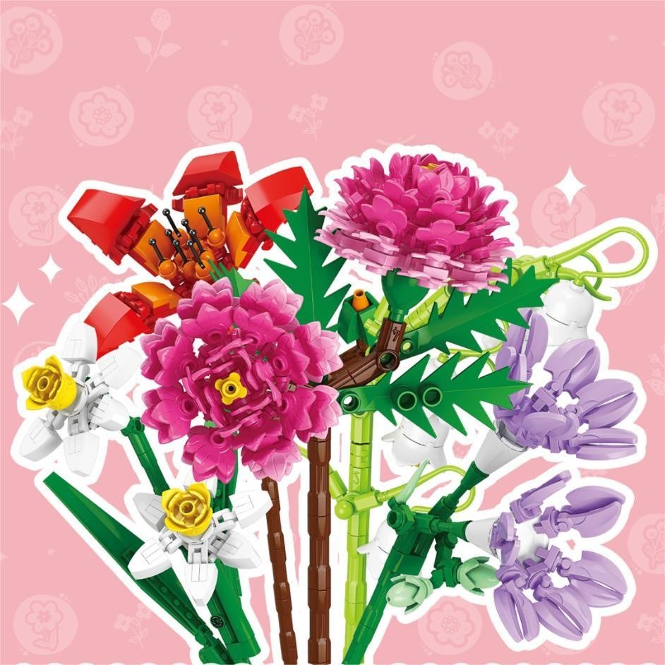 YKO Bunga Blok Bangunan Flowers Plant Series Building Block Flower Rakitan Balok Bangunan