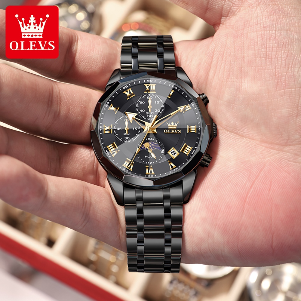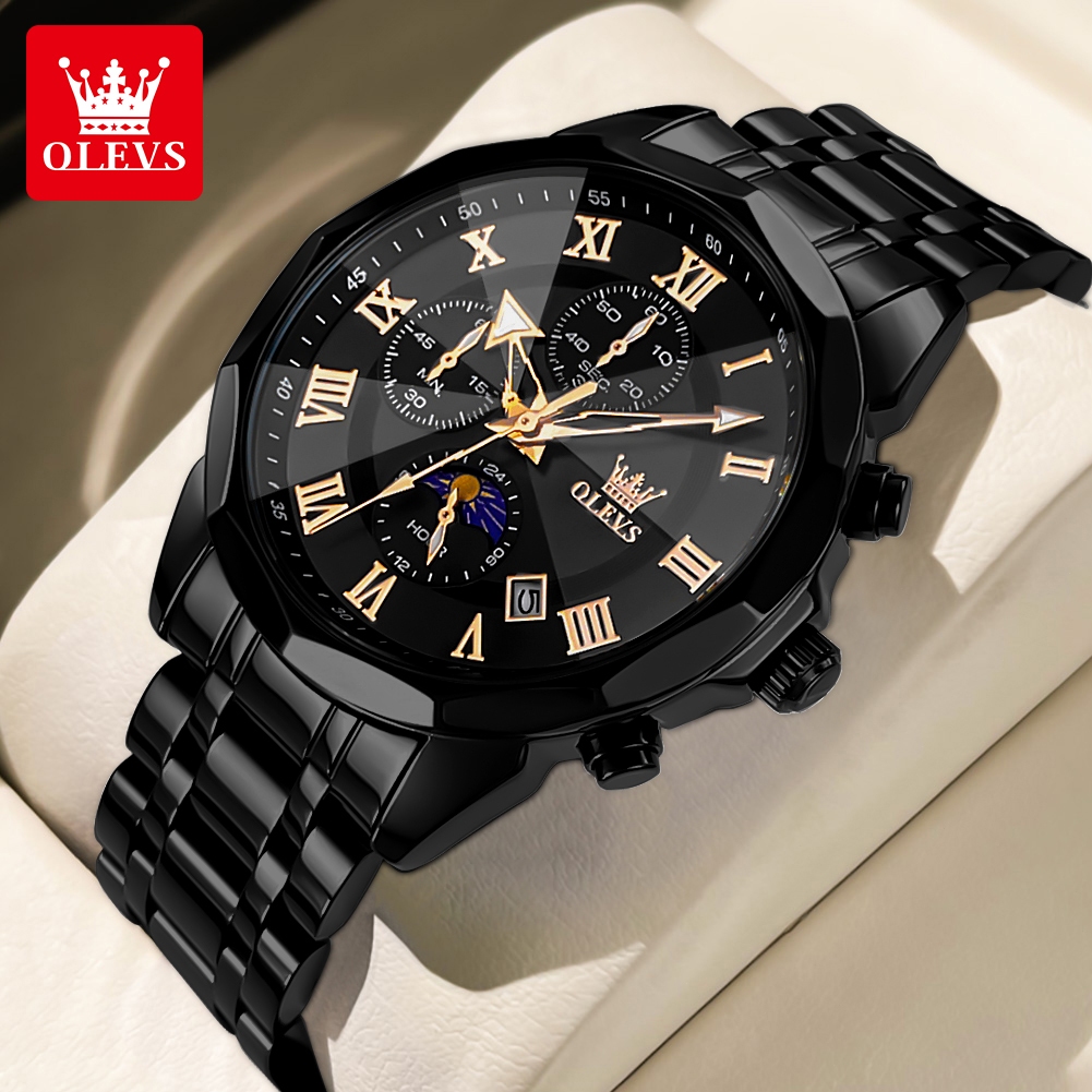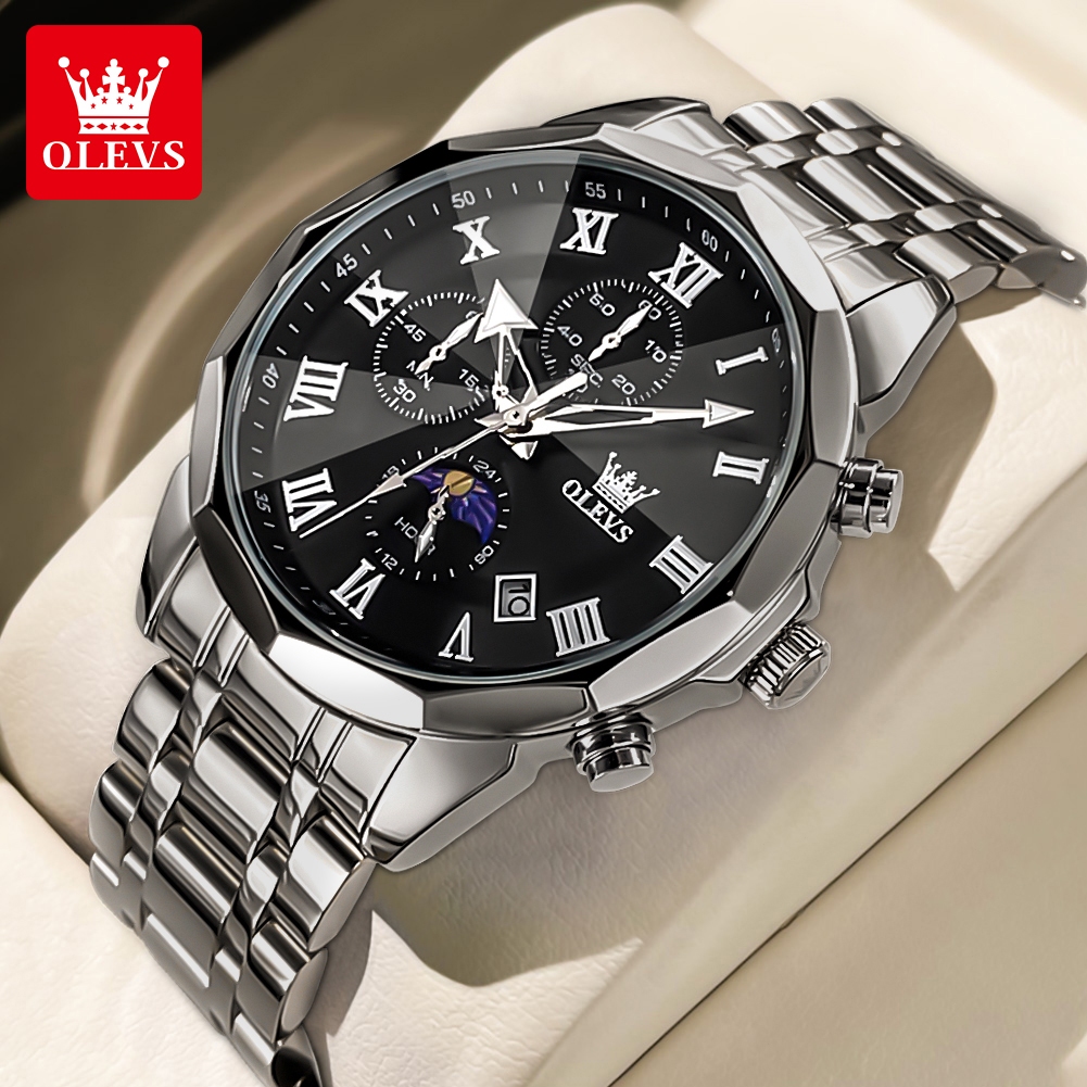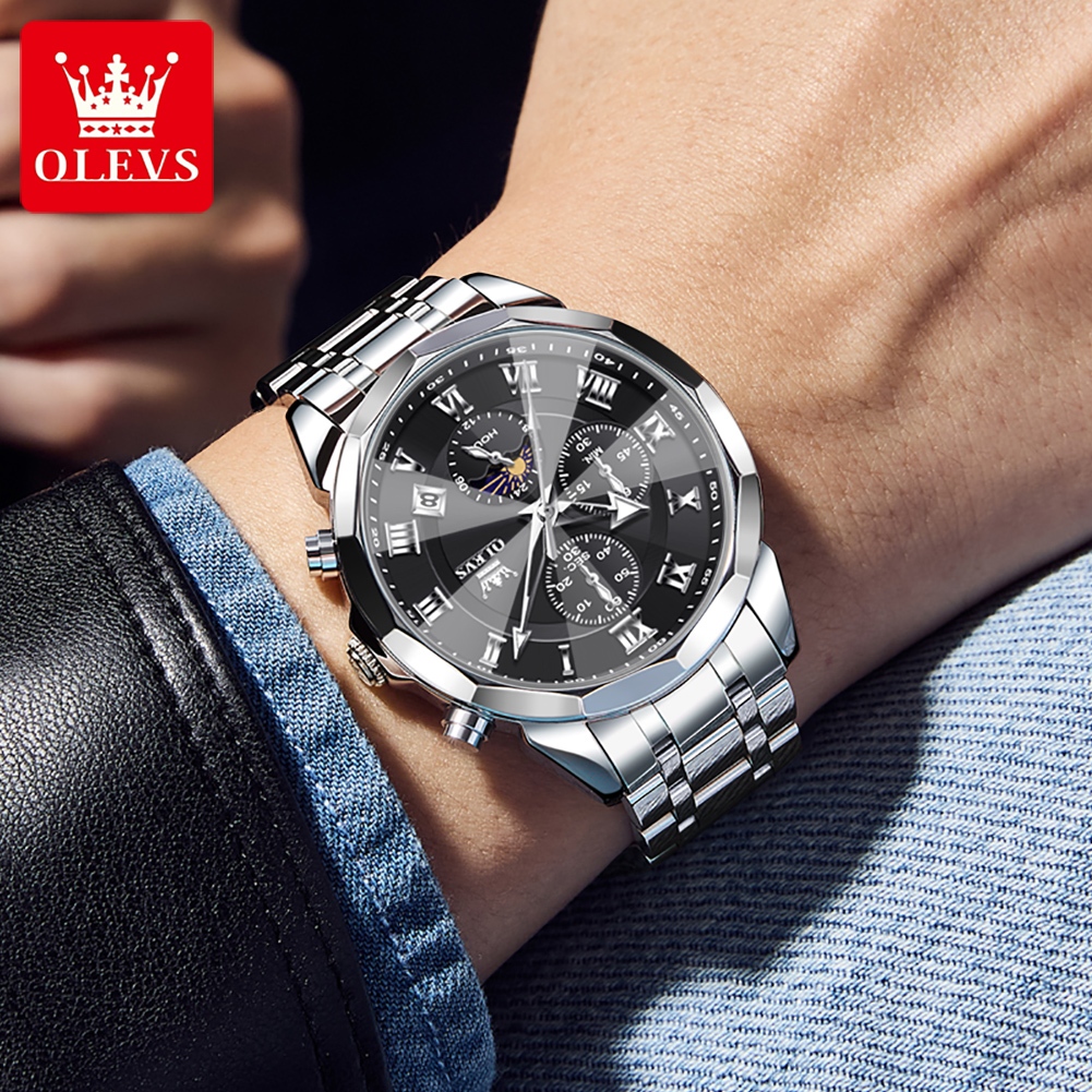 OLEVS Jam Tangan Pria Anti Air Original Stainless Steel Terbaru Luminous Kalender Men Watch 3675