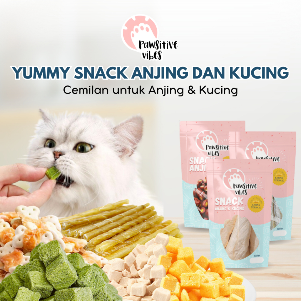 Pawsitive Vibes Snack Anjing Kucing - Freeze Dried Chicken Cubes - Biskuit Snack Hewan Peliharaan - Dog Treats Snack Pembersih Gigi Anjing
