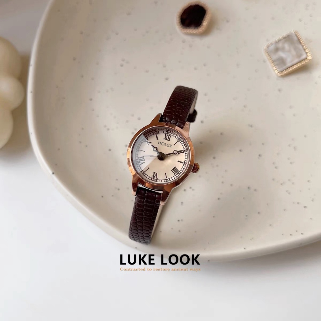 HOLEK 1401 Jam Tangan Wanita Tali Kulit Original Temperamen Retro Simple Quartz Watch Waterproof +Kotak Gratis