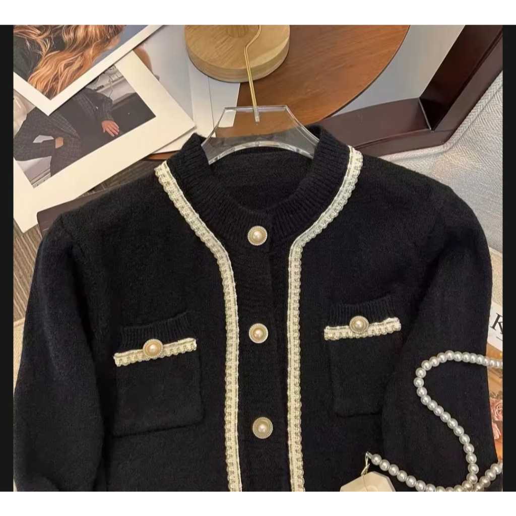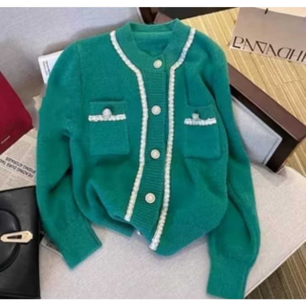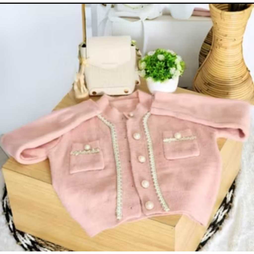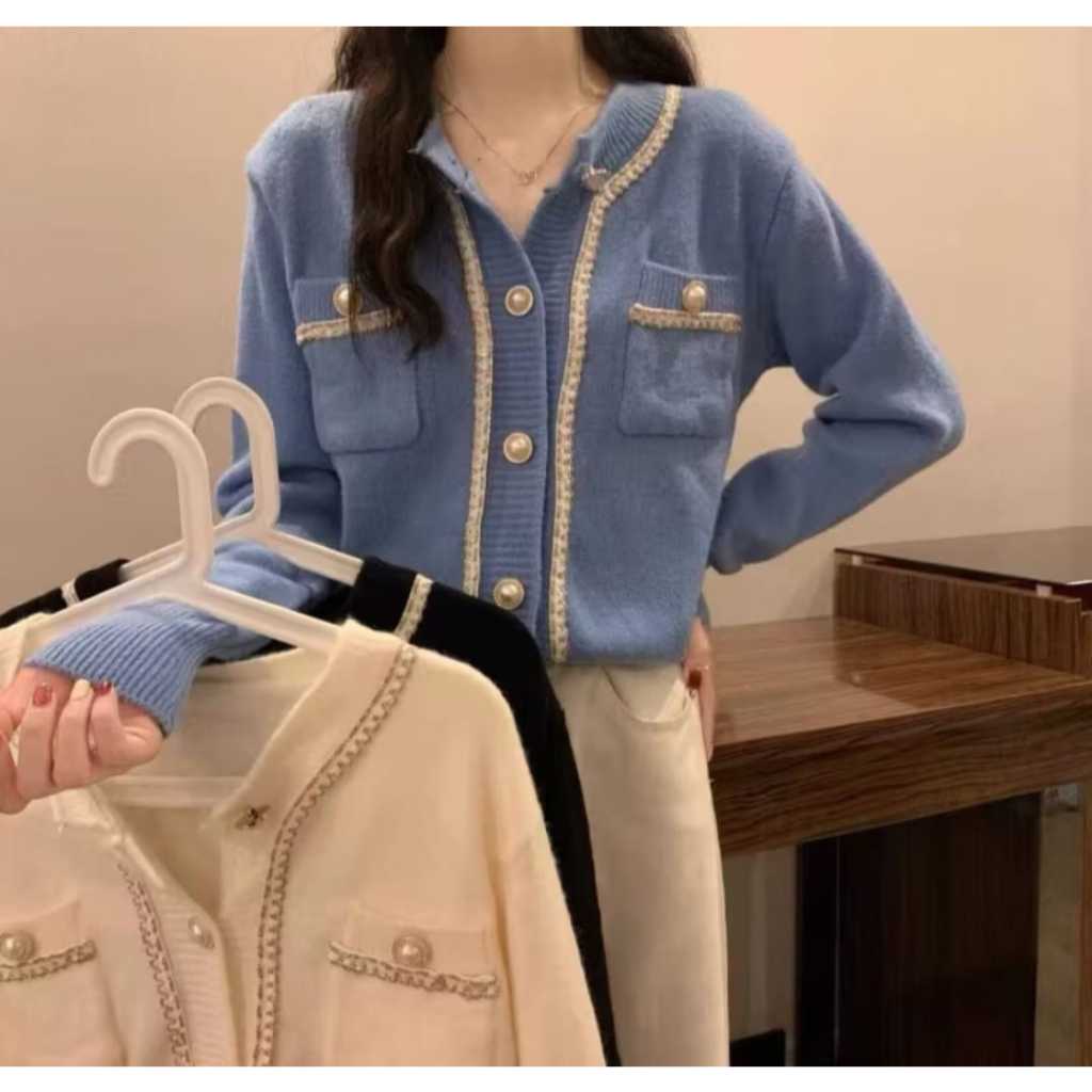 CARDIGAN WOL RAJUT WANITA KNITWEAR KOREAN STYLE LIST FULL MUTIARA