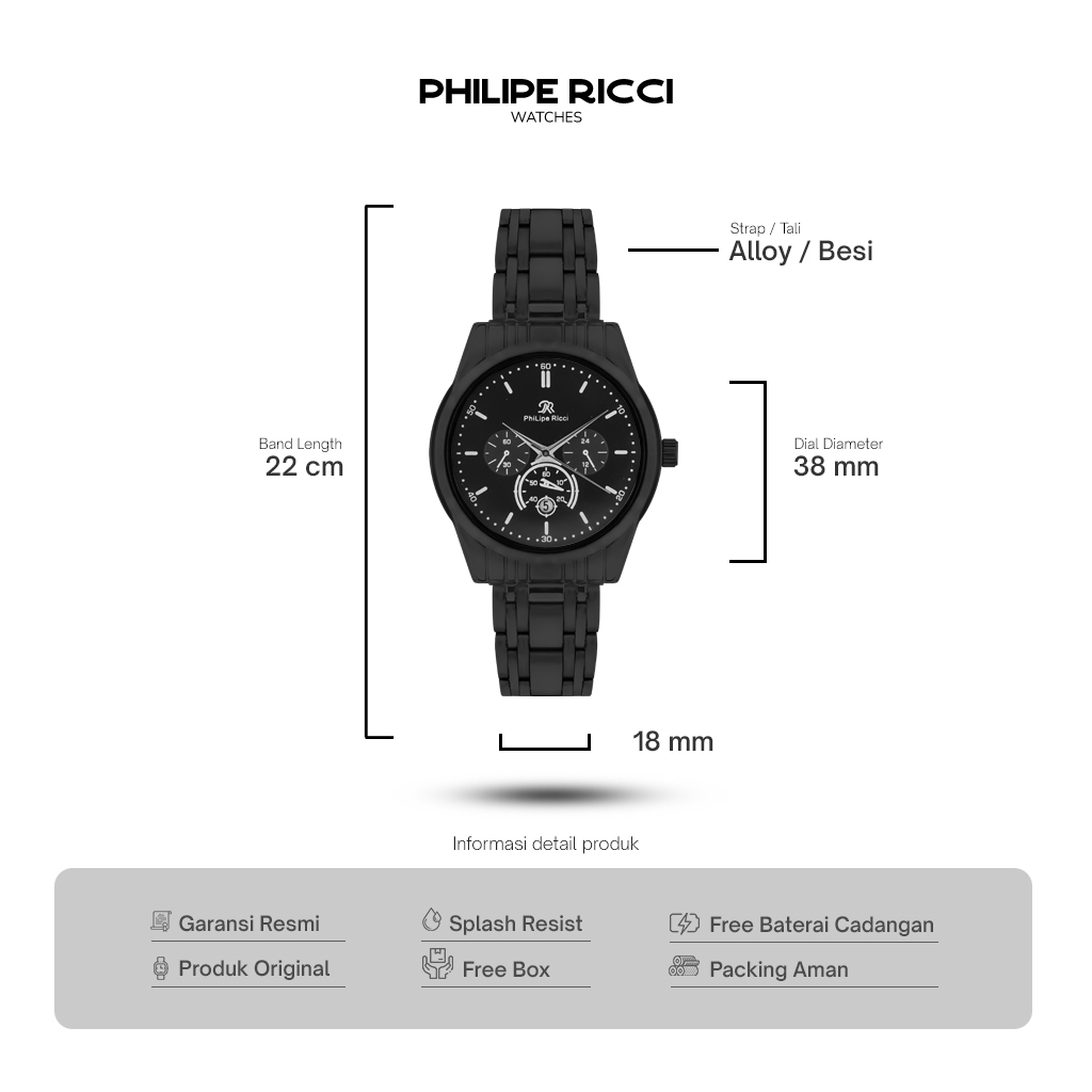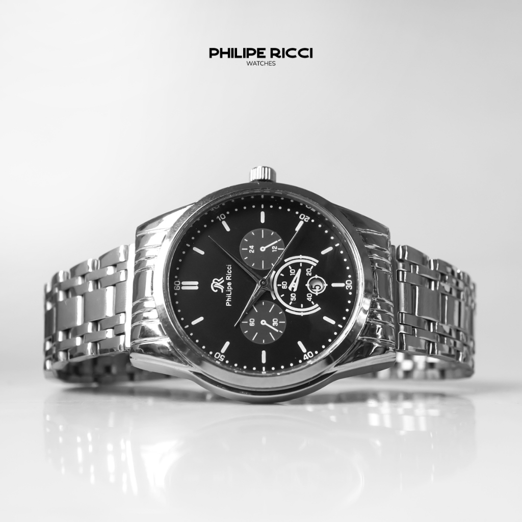 PhiLipe Ricci Jam Tangan Pria Rantai Hitam Analog Terbaru Keren 100 PERSEN Original 7631 men Watches