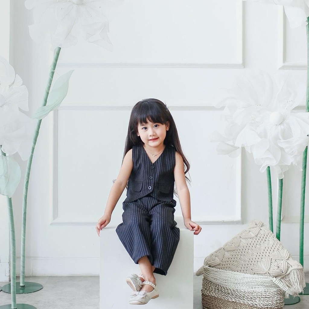 Set Baju Celana Anak Perempuan Korean Style Stelan Valentina Semiwool Usia 1-6th Celvekids -