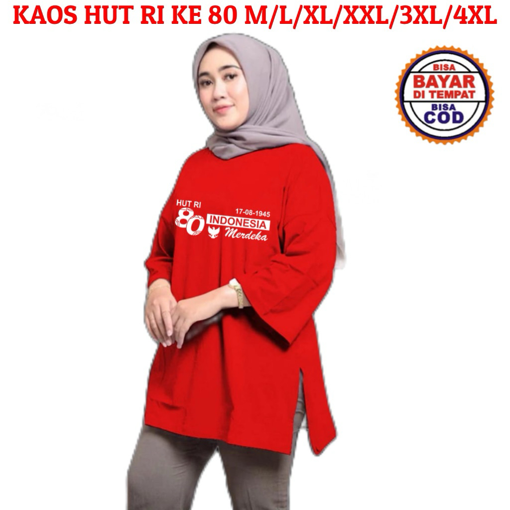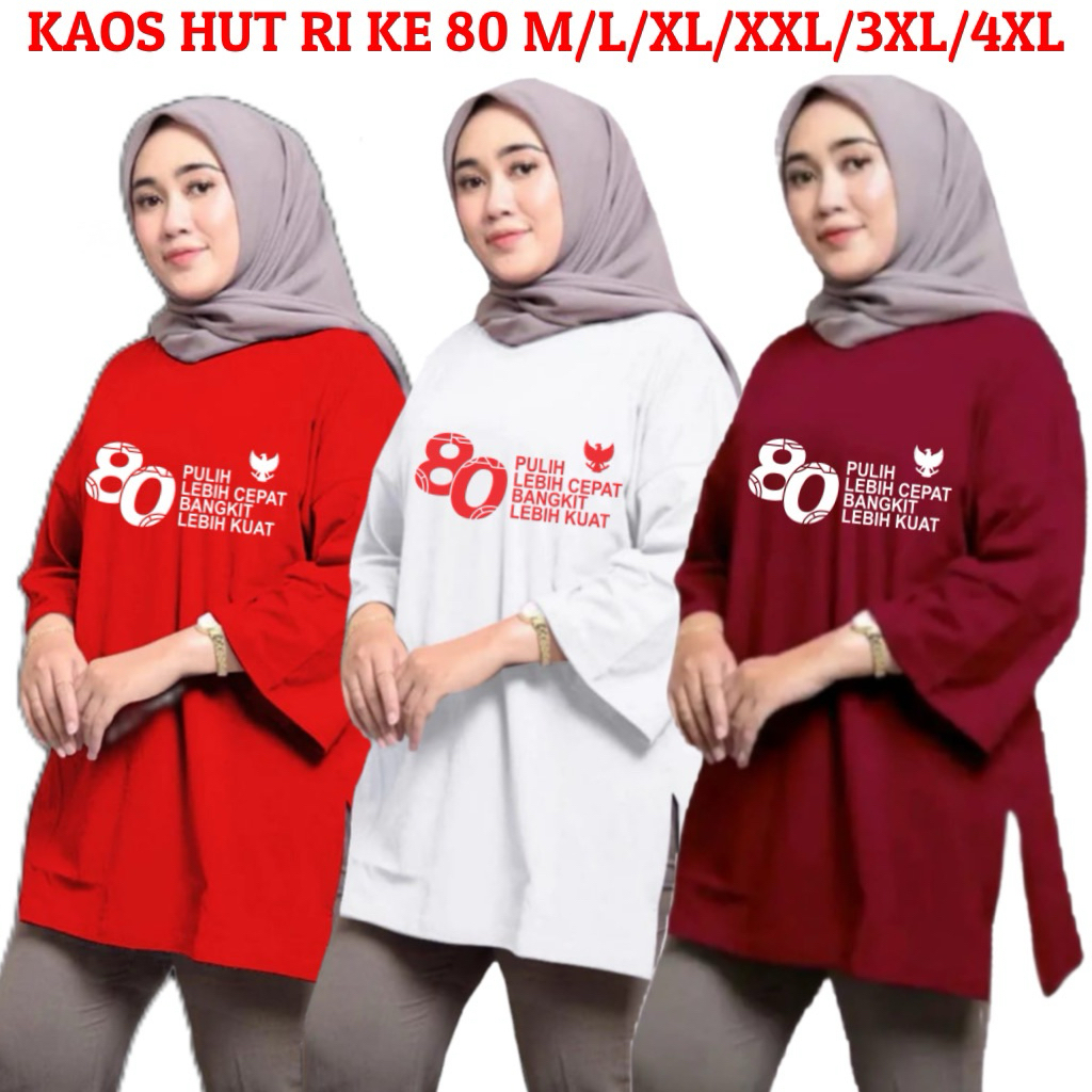 KAOS HUT RI KE 80 / KAOS OVERSIZE WANITA RI 80/ BAJU KAOS ATASAN 17 AGUSTUS