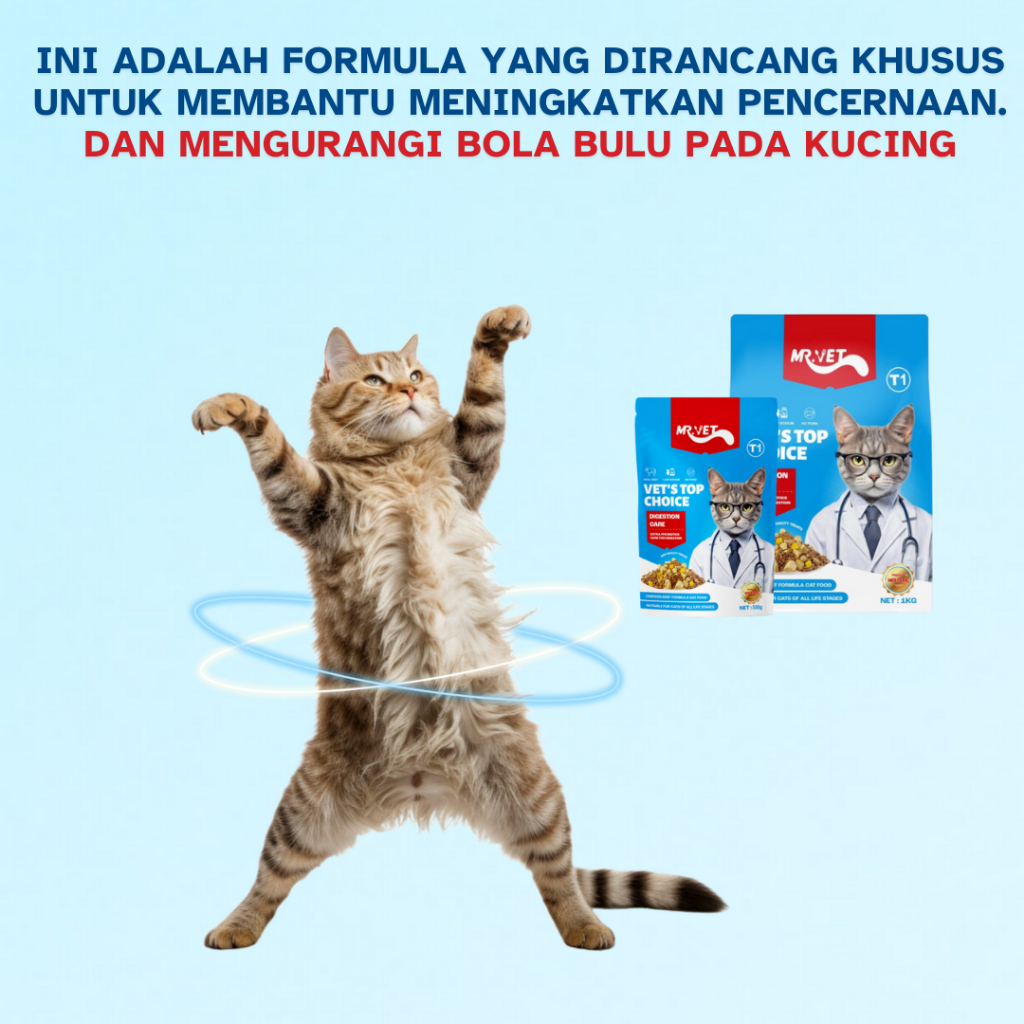 Mr.Vet - Makanan Kucing Kering Mr.Vet T1 50g untuk Menjaga dan Merawat Sistem Pencernaan【GM】