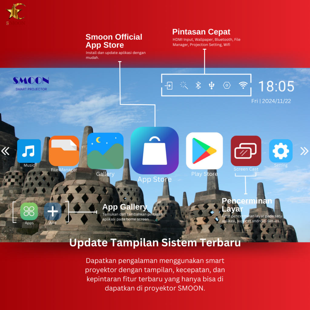 PROYEKTOR ANDROID SMART PROYEKTOR SMOON LCD TV INCLUDE HDMI SPEAKER NETFLIX YOUTUBE
