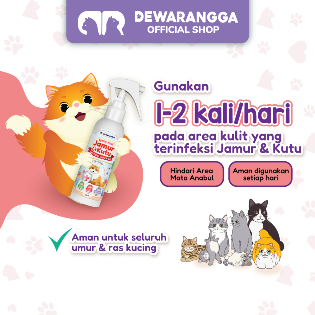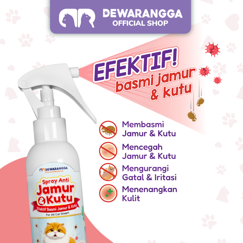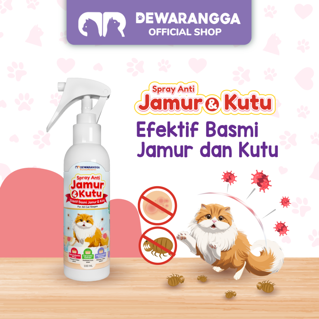 Dewarangga Spray Anti Jamur & Kutu Kucing untuk Melindungi Kulit & Bulu, Menangkal Infeksi Jamur, Kutu Hingga Tuntas dengan Nano Colloidal Silver dan Citronella Extract.