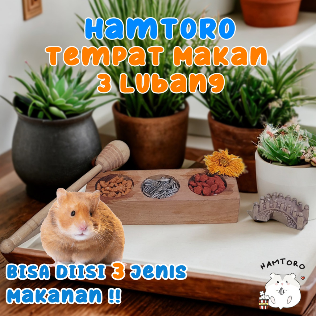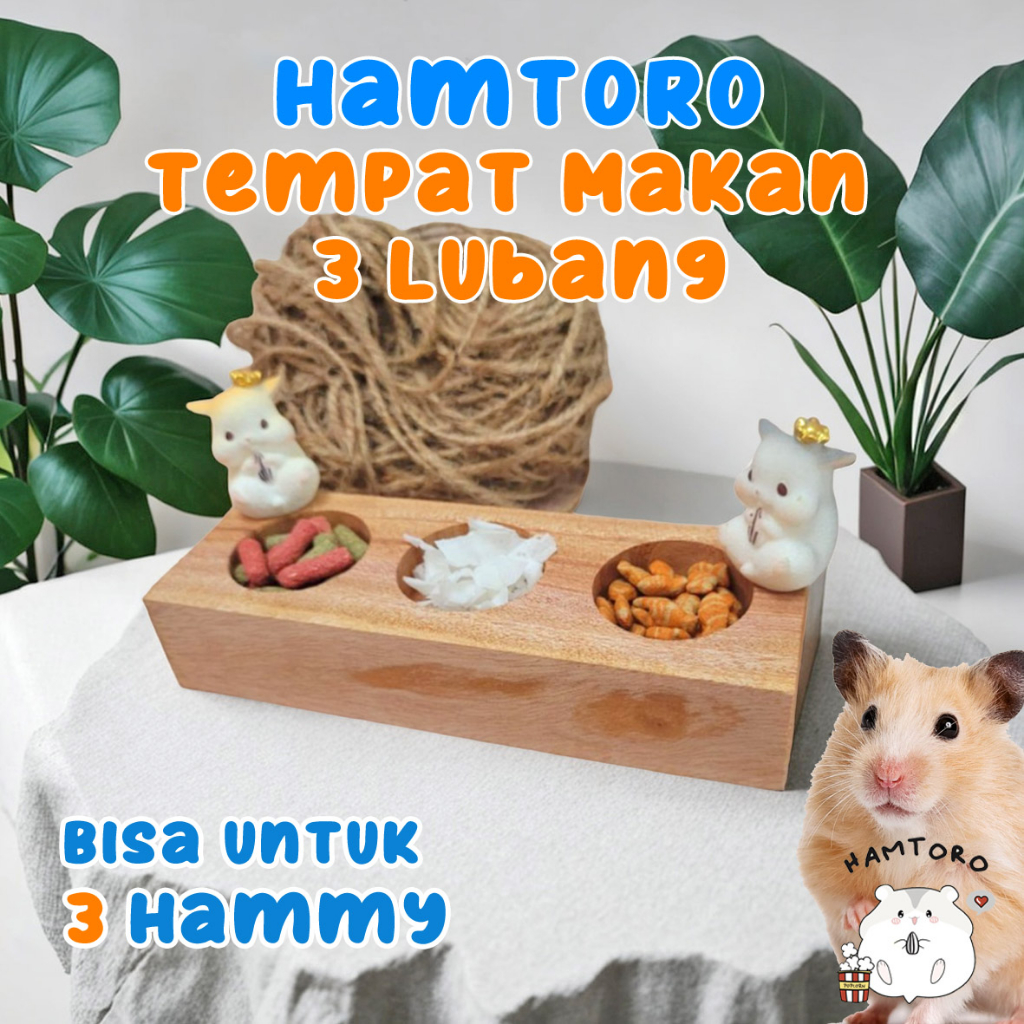 Tempat Makan 3 Lubang Hamster Kayu Alami Grosir