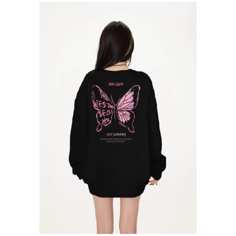 SWEATER CREWNECK CREWNECK OVERSIZE BUTTERFLY WANITA