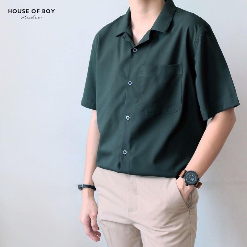 emeja emeja Oversize Earth Tone / meja Pria Santai Polos Lengan Pende