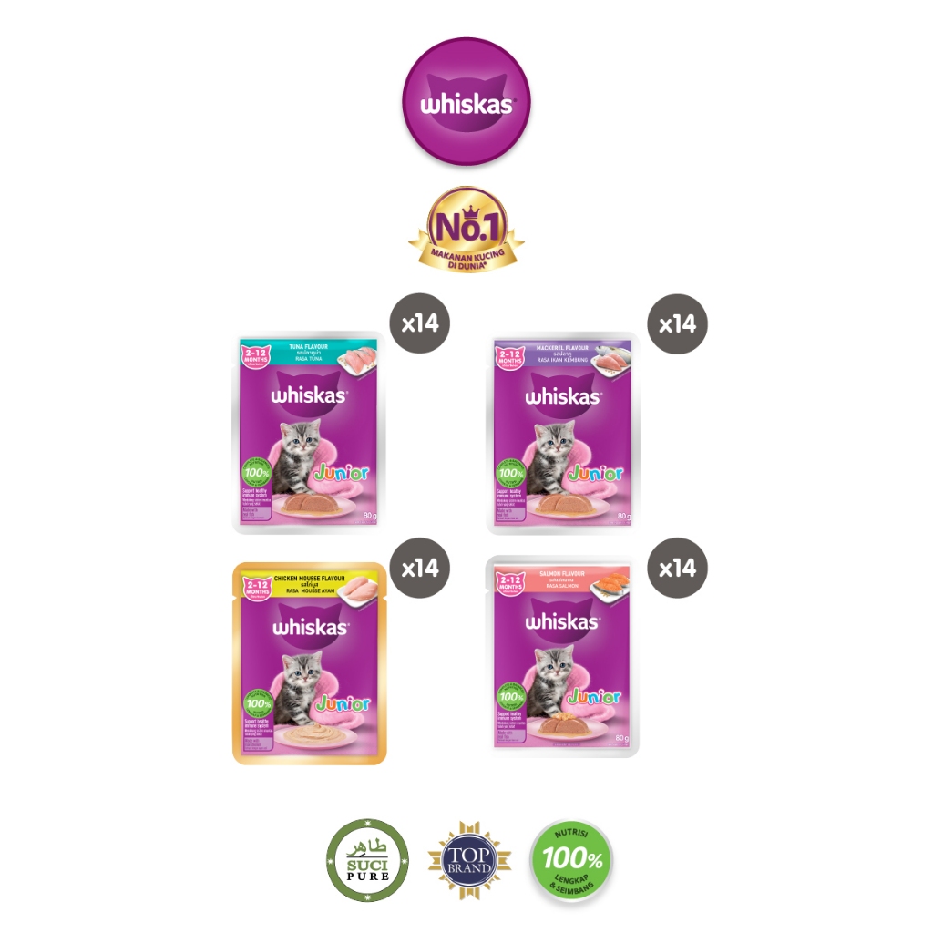 Whiskas Junior Makanan Anak Kucing Basah Pouch Pilih Rasa 80gr 14 Pack