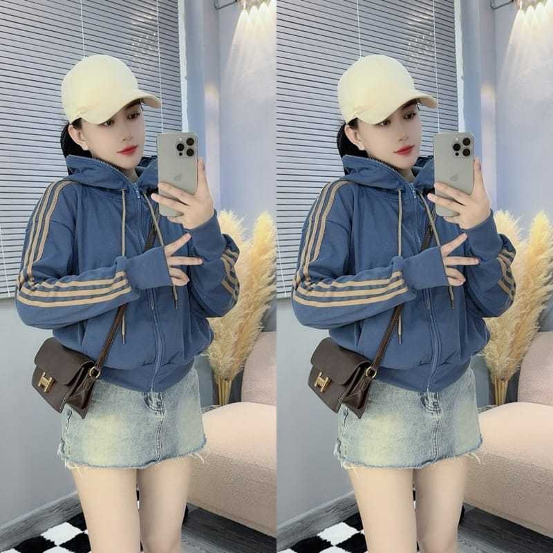 PUEL ZIP HOODIE ZIPPER JAKET SEMI CROPE WANITA KOREAN STYLE