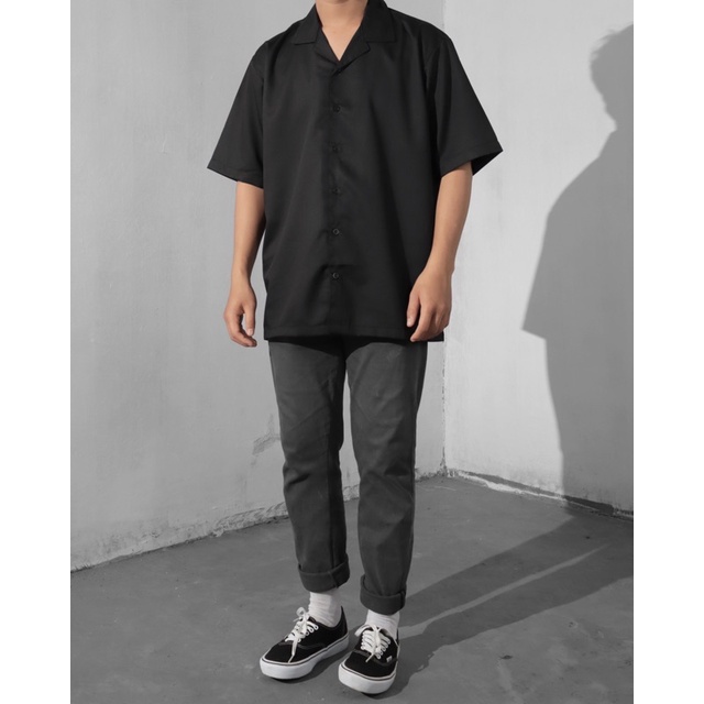 emeja Heyplain emeja Oversized Hitam Lengan Pende - Bowling Shirt