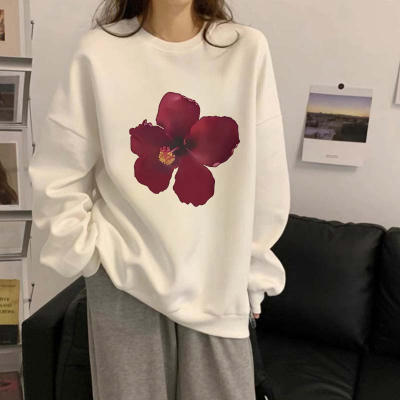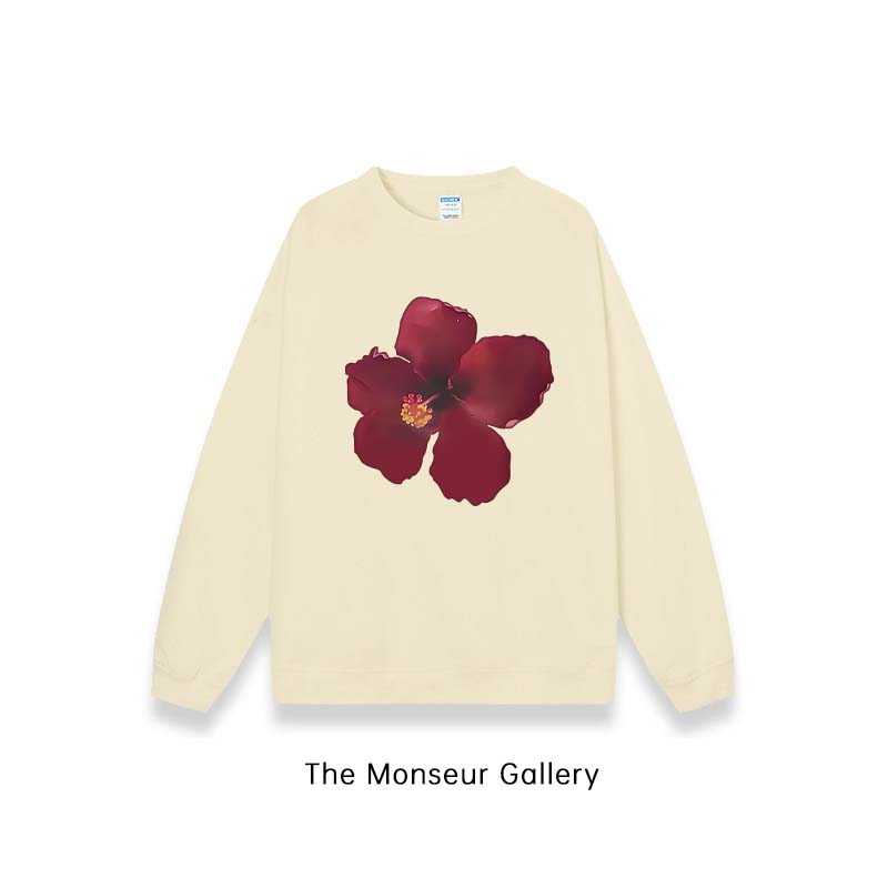 THE MONSEUR GALLERY SWITER WANITA OVERSIZE DESAIN BUNGA HIBISCUS ORCHID PRINT STYLE SWEATER OVERSIZE CREWNECK | SWEATER HITAM