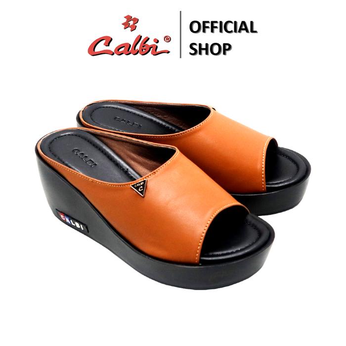 CALBI Sandal Wedges Perempuan 7cm Selop Kulit OOTD Simple - KLE 2133 - Kunir 36