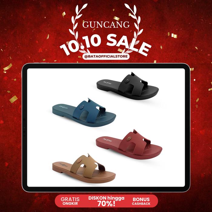 [10.10 Sale] PATA-PATA - LOONA "Rubber" Sendal Slide Karet Wanita - Sandal - Black 36 (EU) - 3 (UK)