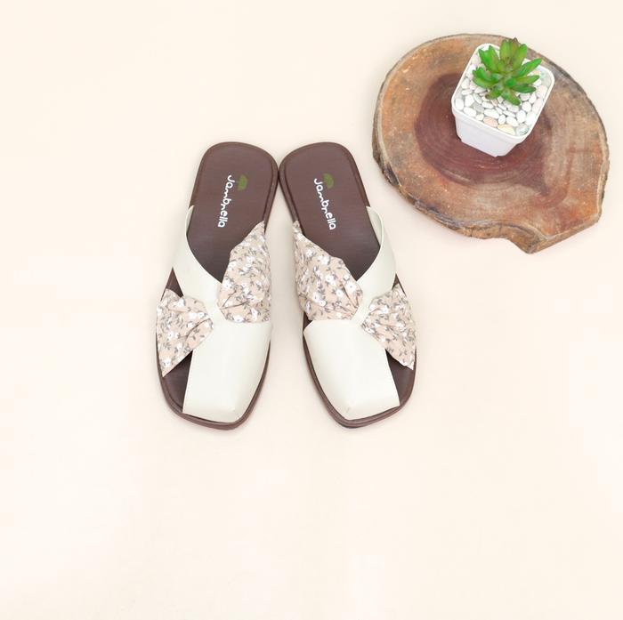 sandal flat wanita Jambrella HAGIA CREAM sandal cewek trendy - Cream 36
