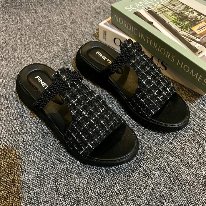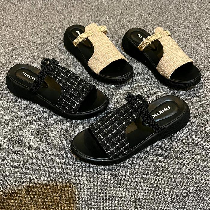 Finetic Sandal Wanita Kekinian Wedges 3 Cm Hak Tinggi Perempuan Sendal - Hyuna Cream 37