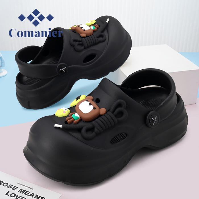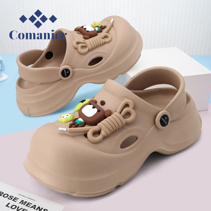 Comanier Sepatu Sandal Baim Kekinian Wanita Dewasa Sendal Kodok Wedges Platform EVA - Khaki 36-37