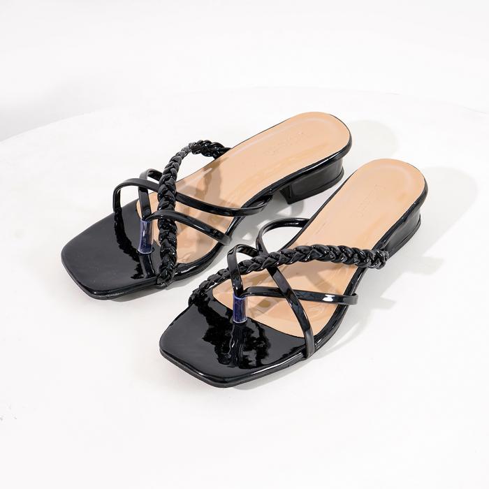 [Deliwafa] Heels Ginara | Sendal Wanita | Open Toe | Sandal cewek - BLACK 37