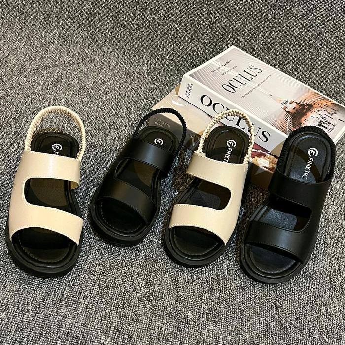 Finetic Sandal Wanita Platform Kekinian Series Sendal Selop Cewek - Agalia Cream 37