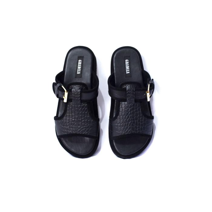 Gradela - BELLA Sandal Tali Platform Wanita Sendal Croco Premium - Hitam 36