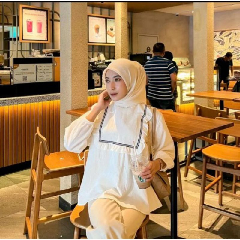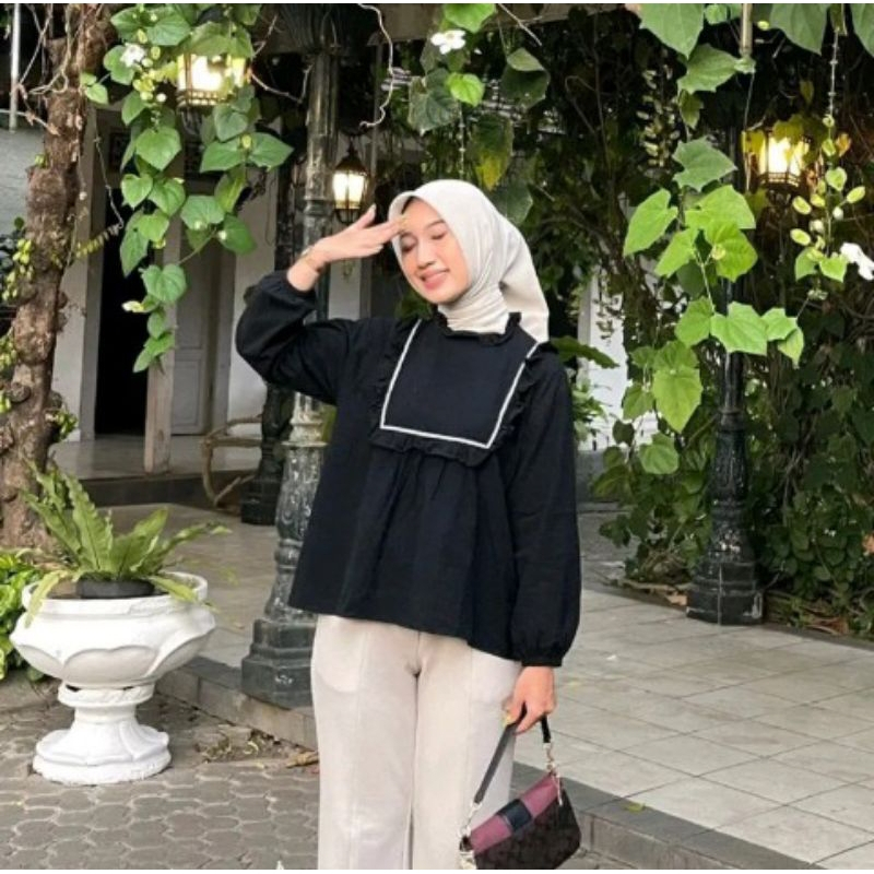 BONI T0P BLOUSE KATUN TWIST MOTIF PITA KOREAN MINIMALIS