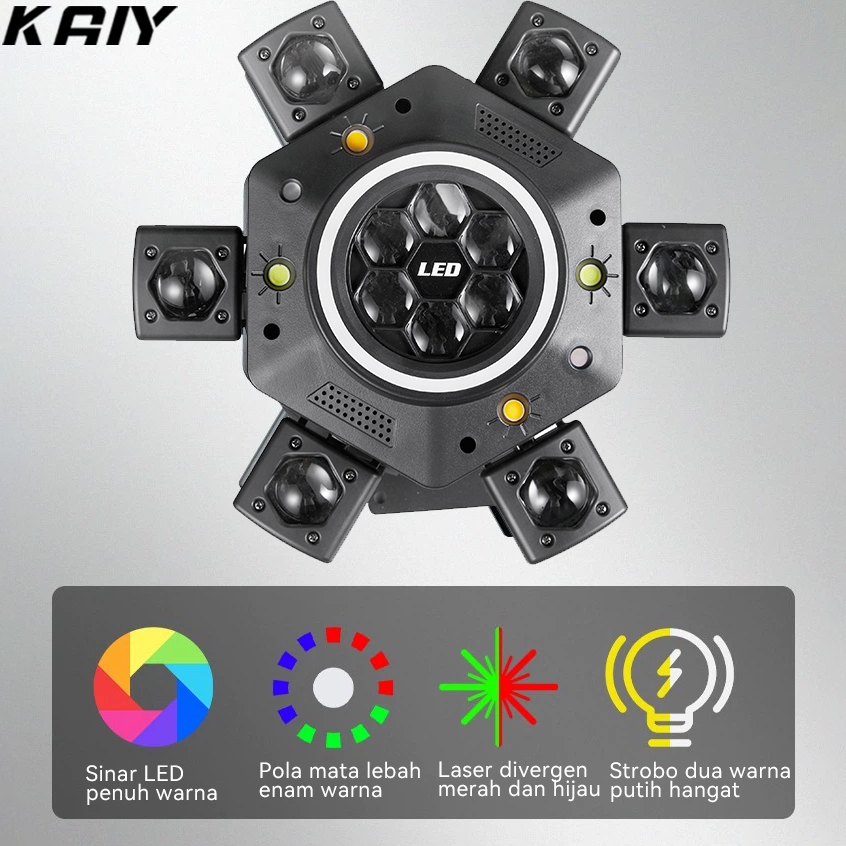 Lampu Sorot 150W 4IN1 Moving Head Laser SixBee Eye RGBW + LED Beam untuk Panggung, Bar, Club, DJ, Wedding (DMX512/S