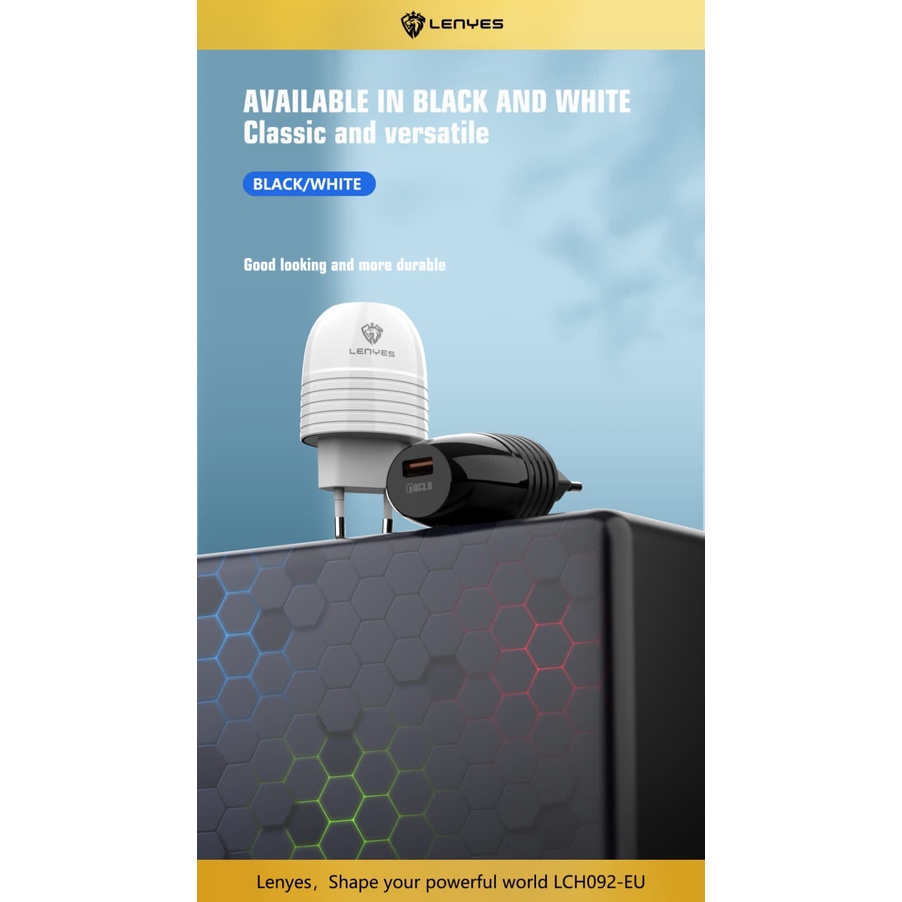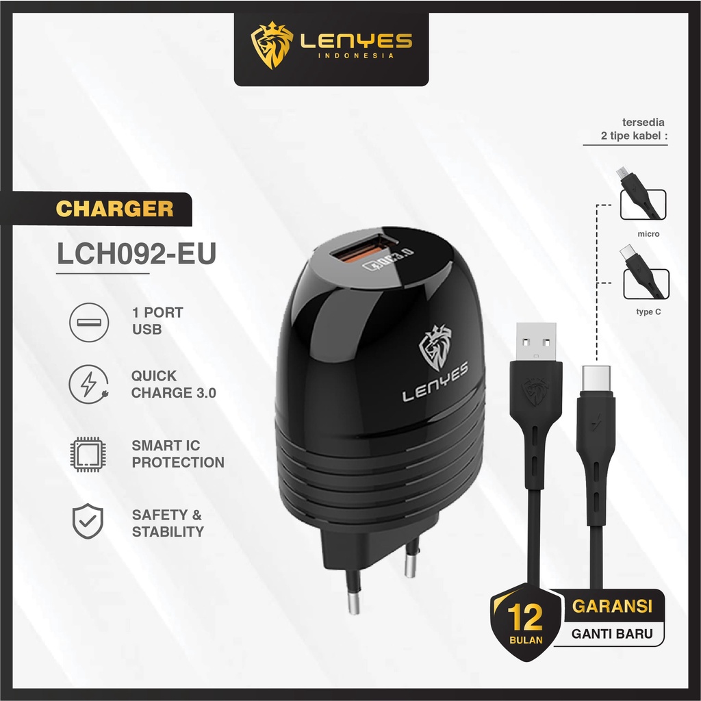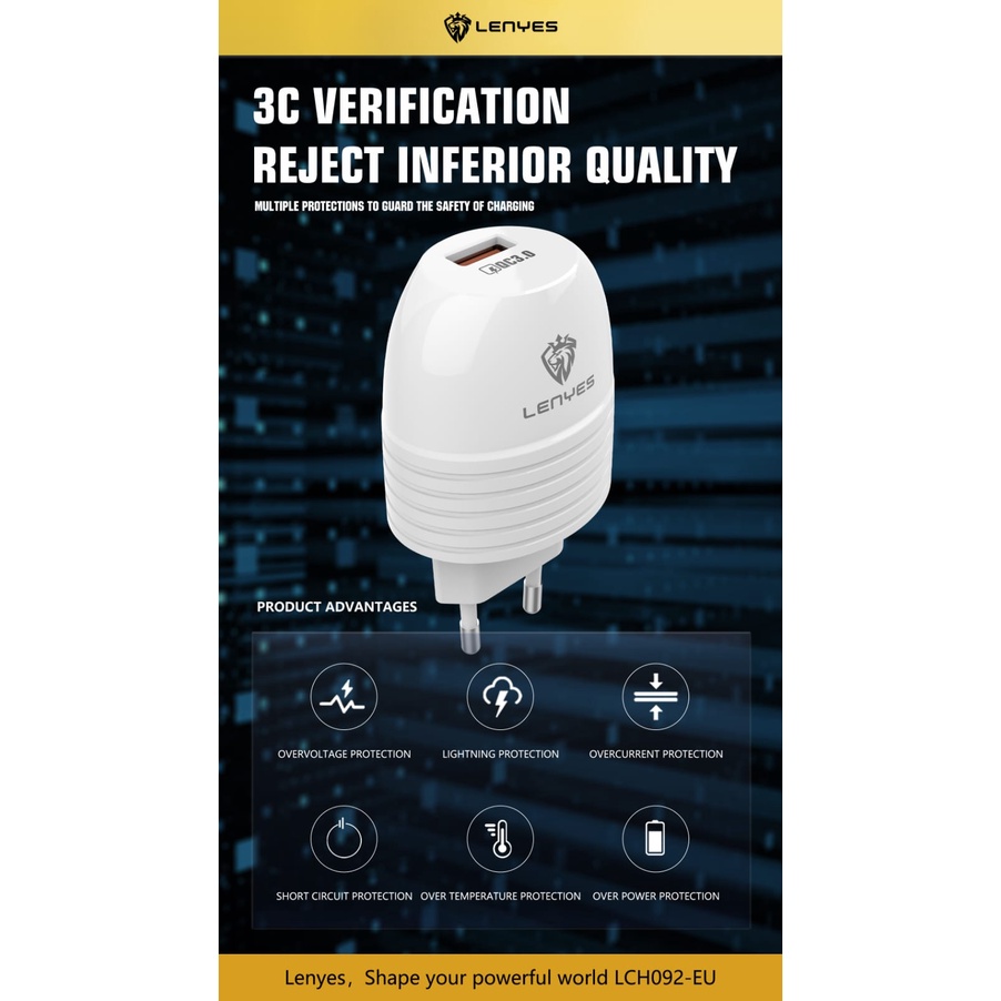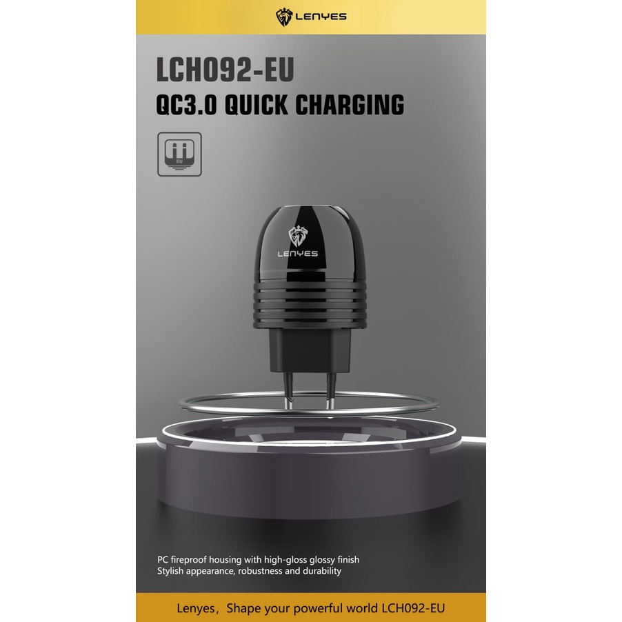 charger lenyes lch092 1 usb qc 3.0 fast charging 1 set adaptor kepala dengan kabel data casan hp