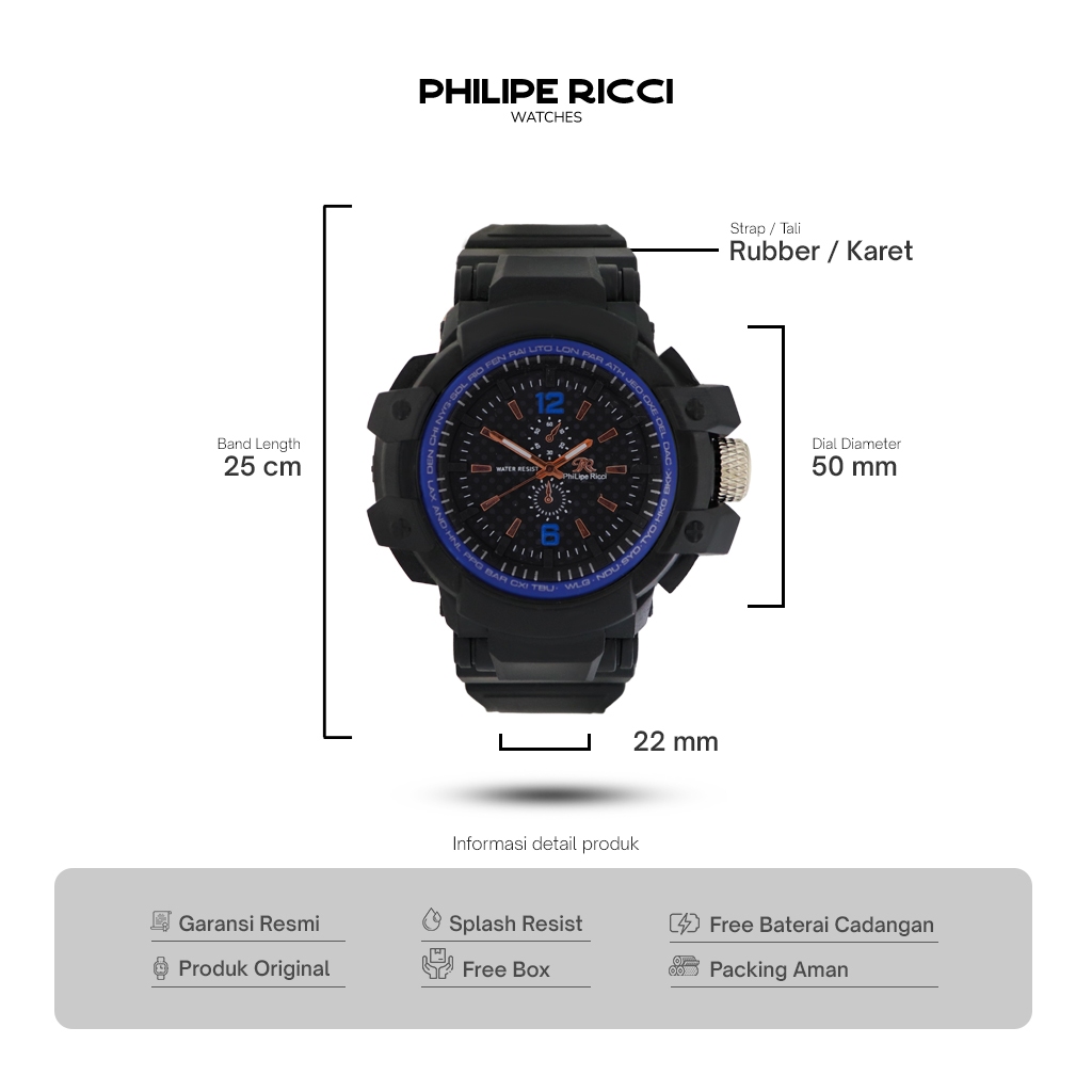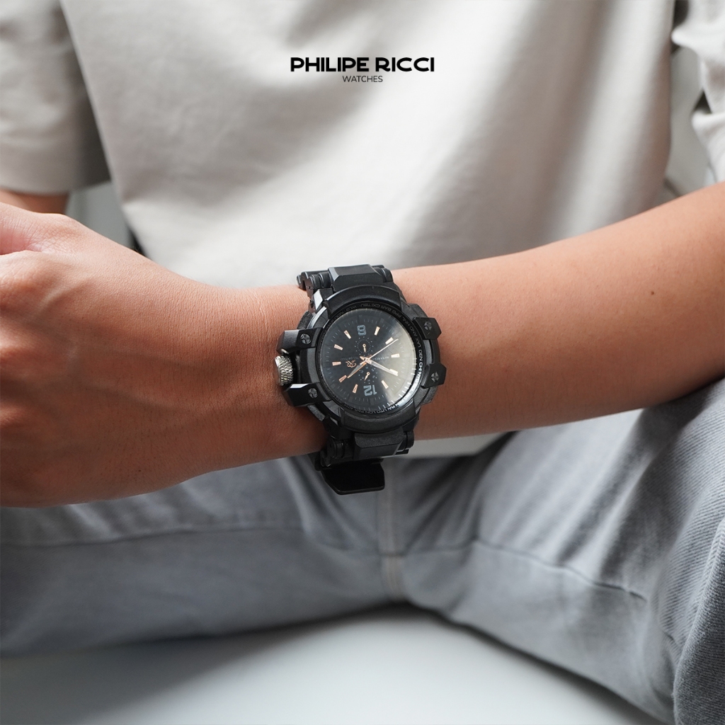 PhiLipe Ricci Jam Tangan Pria Karet Hitam Sporty Keren Terbaru Modern XL 1921D Men Watches Free Box